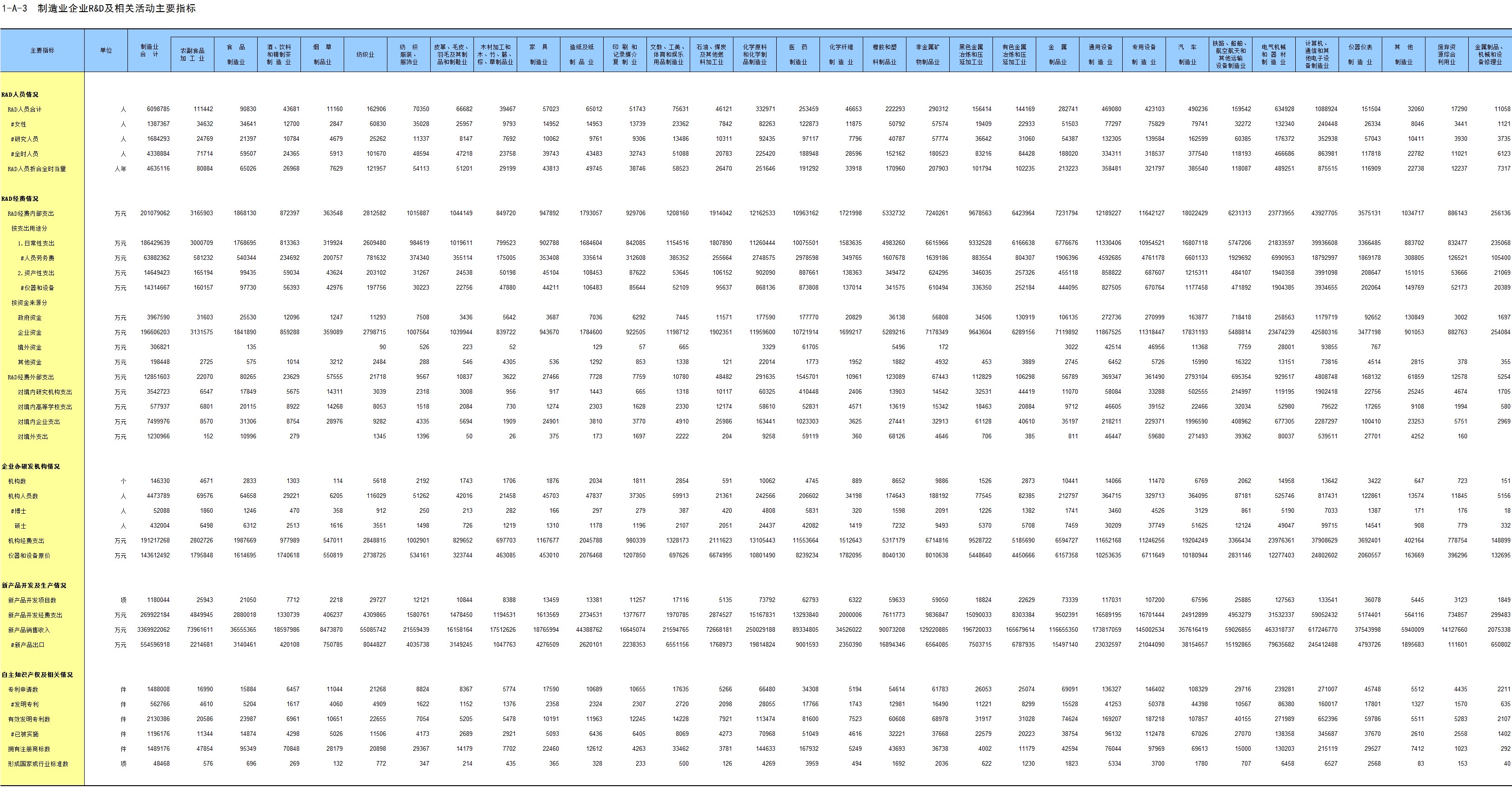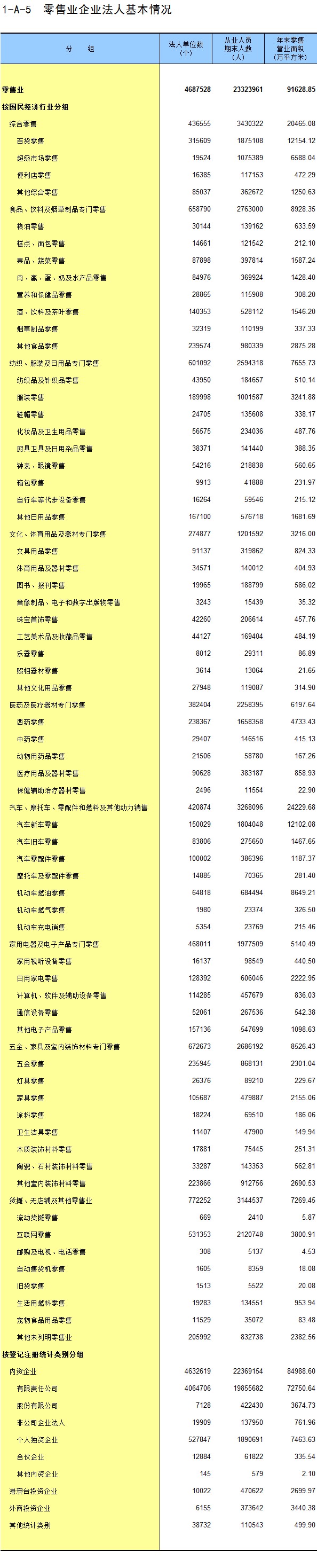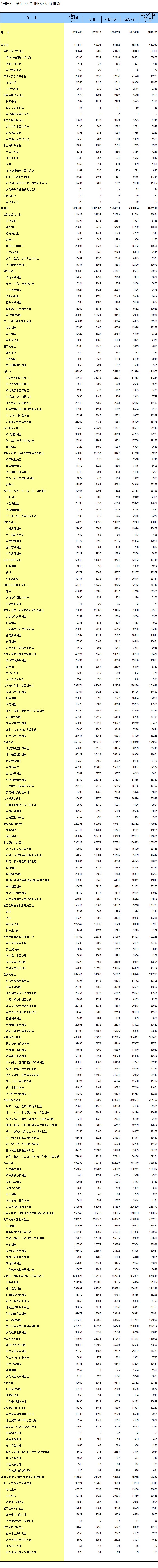 1-3 按行业(中类)分组的法人单位数及从业人员数