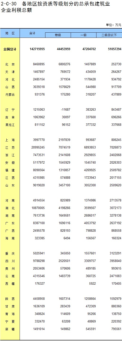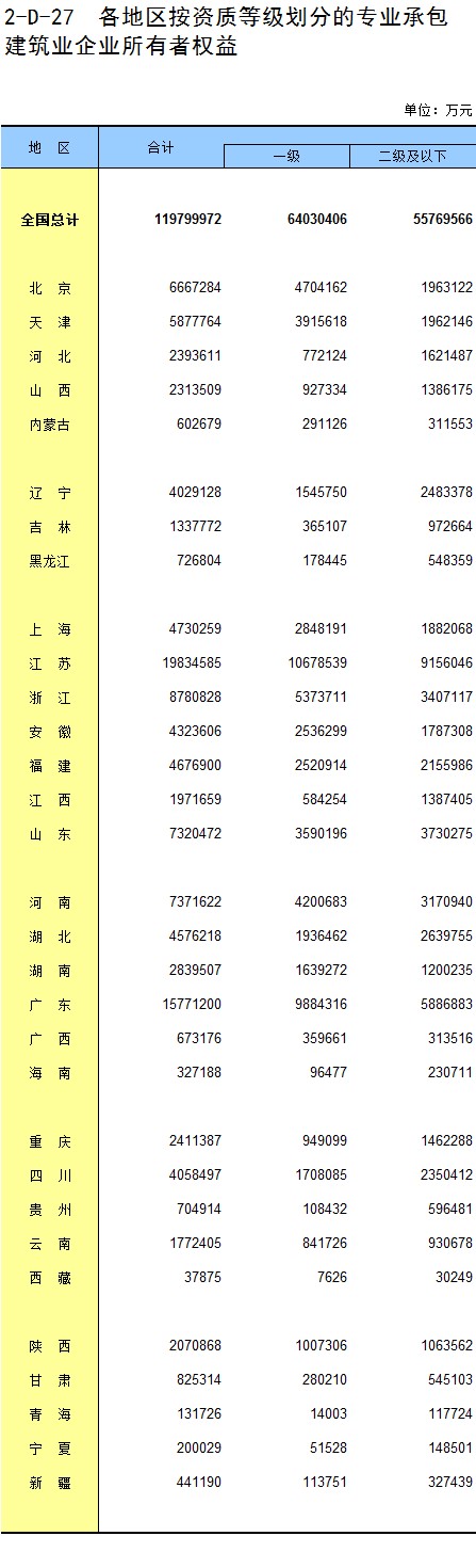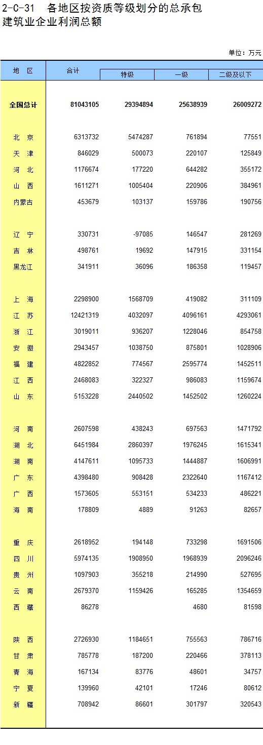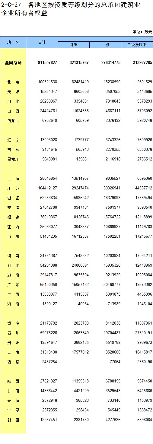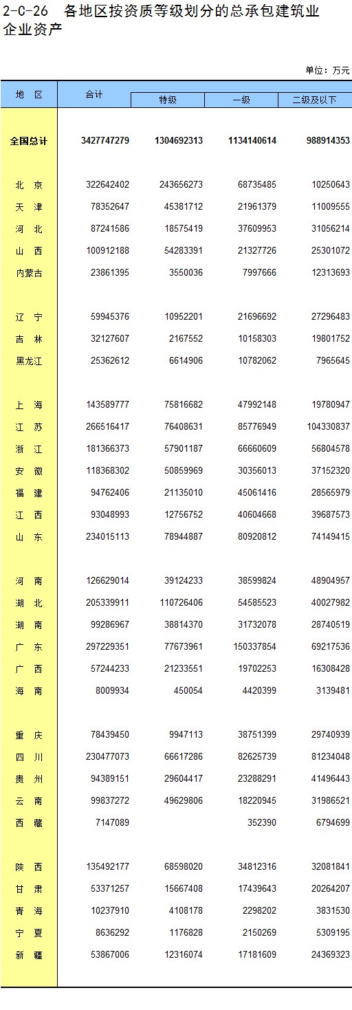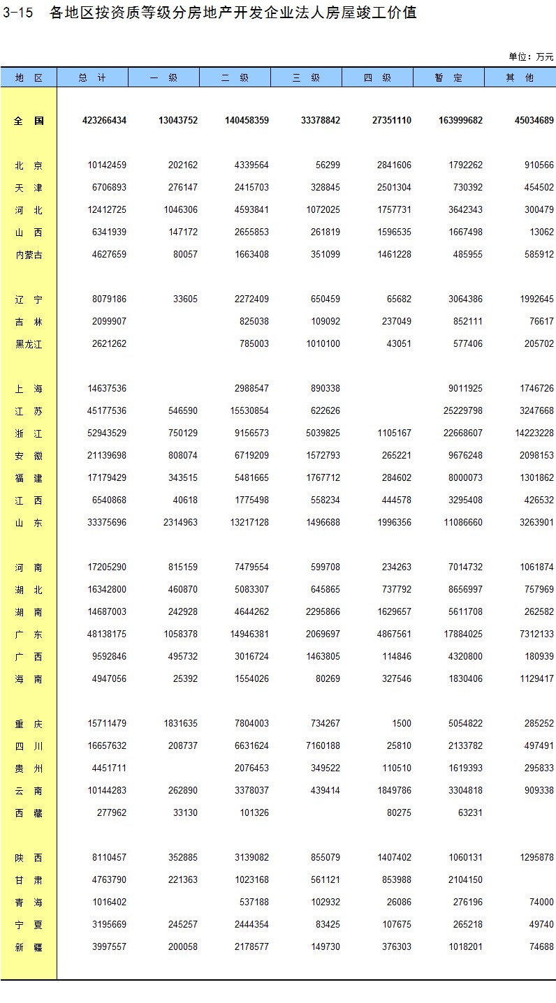 3-15 各地区按资质等级分房地产开发企业法人房屋竣工价值