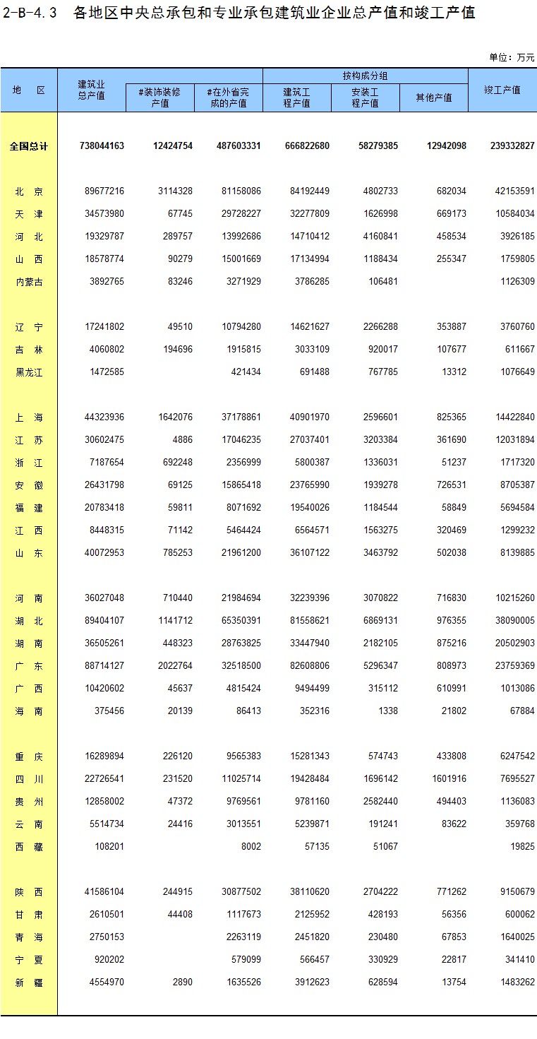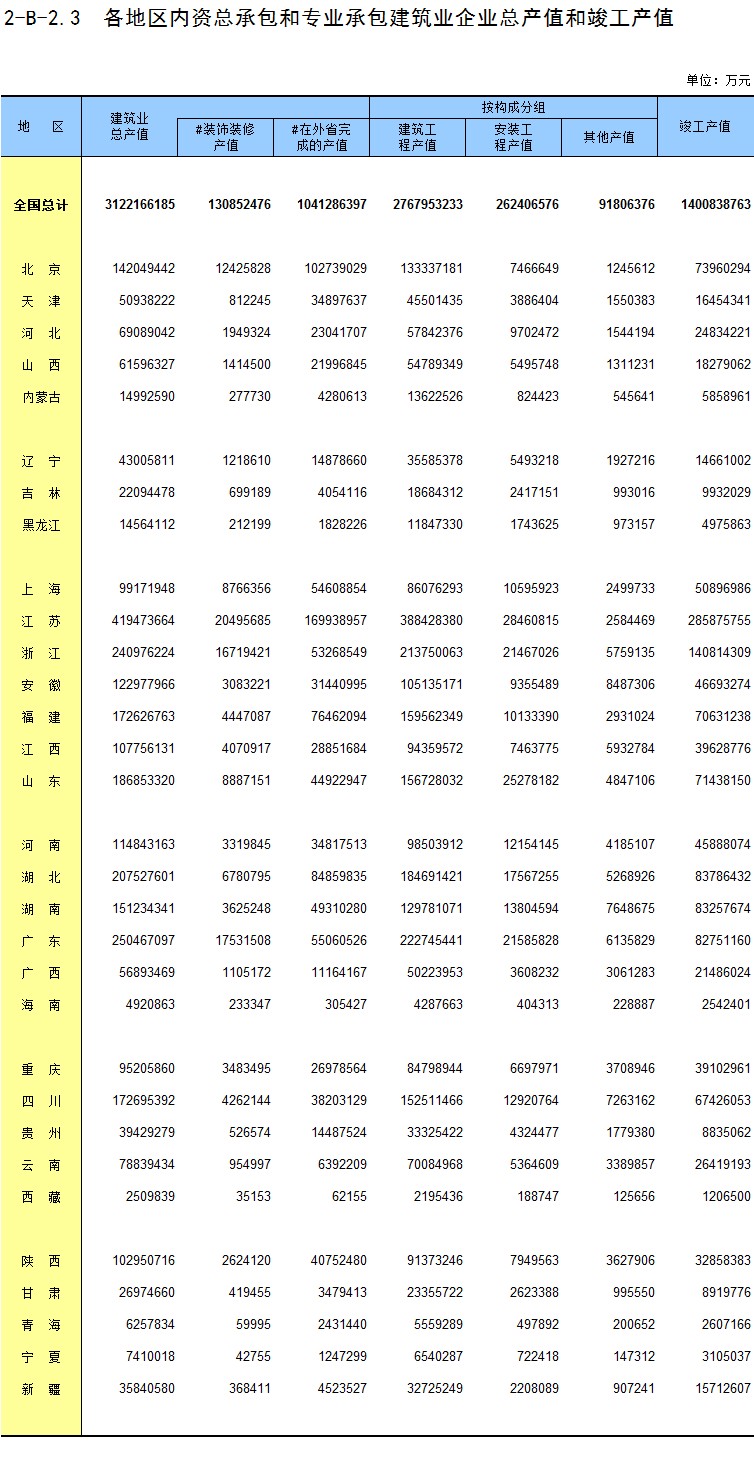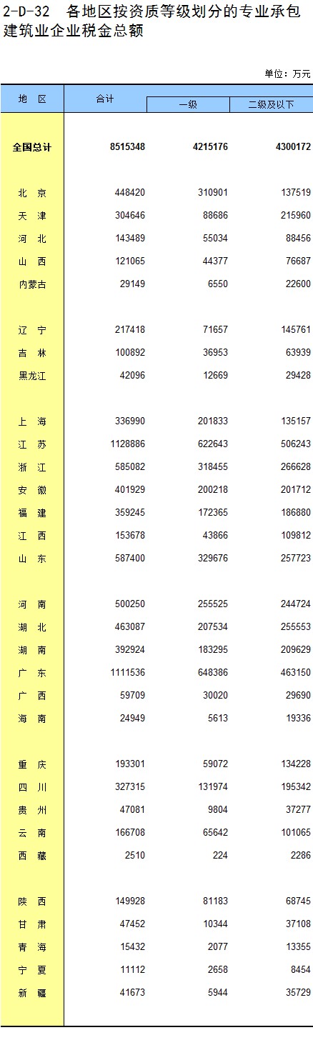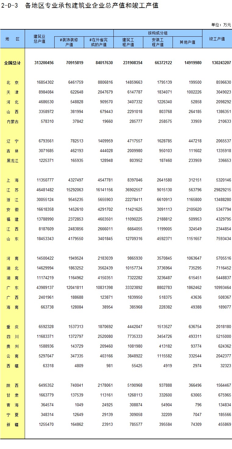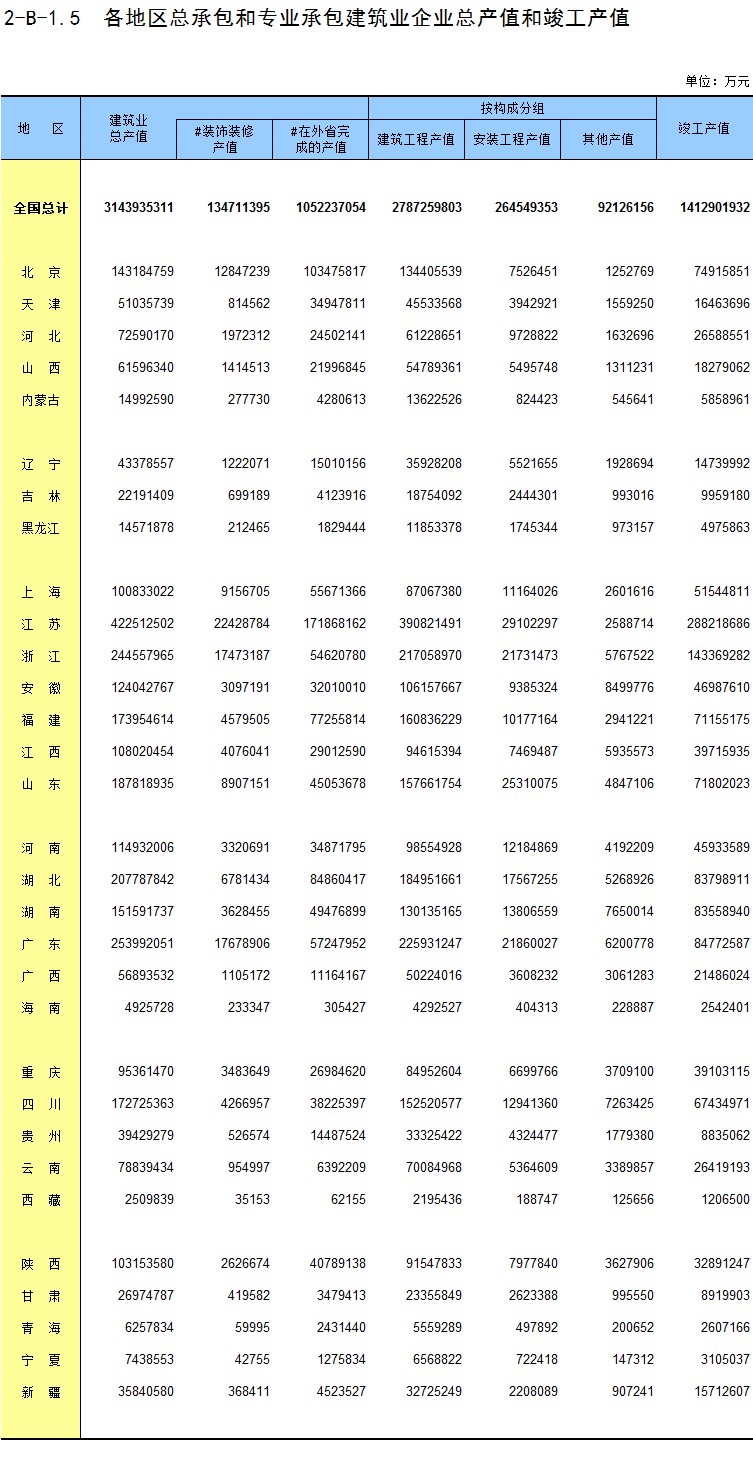 3-15 各地区按资质等级分房地产开发企业法人房屋竣工价值