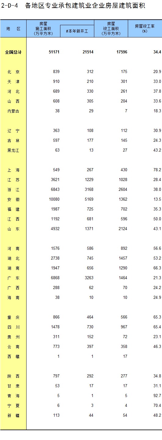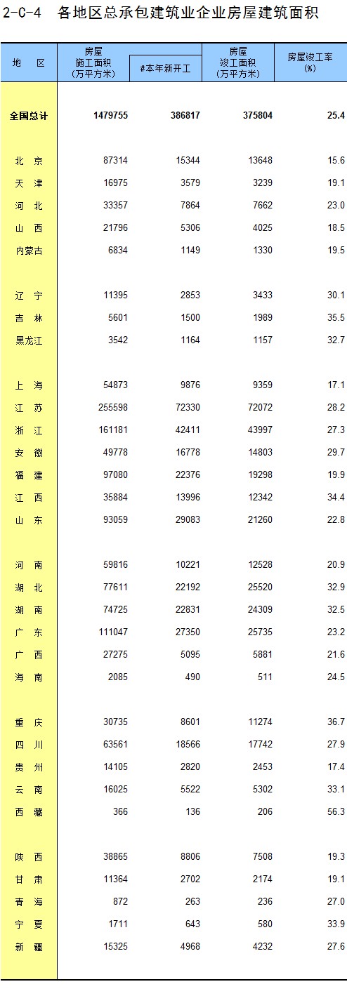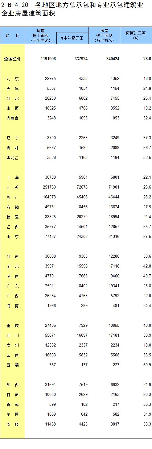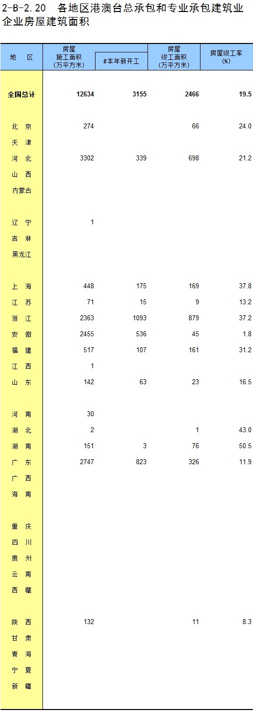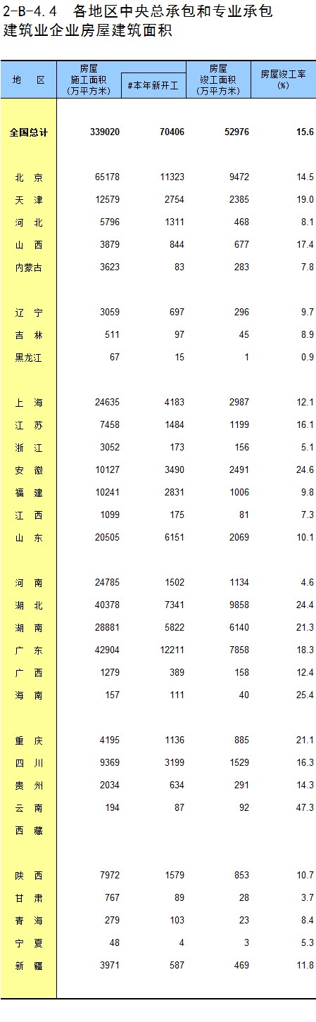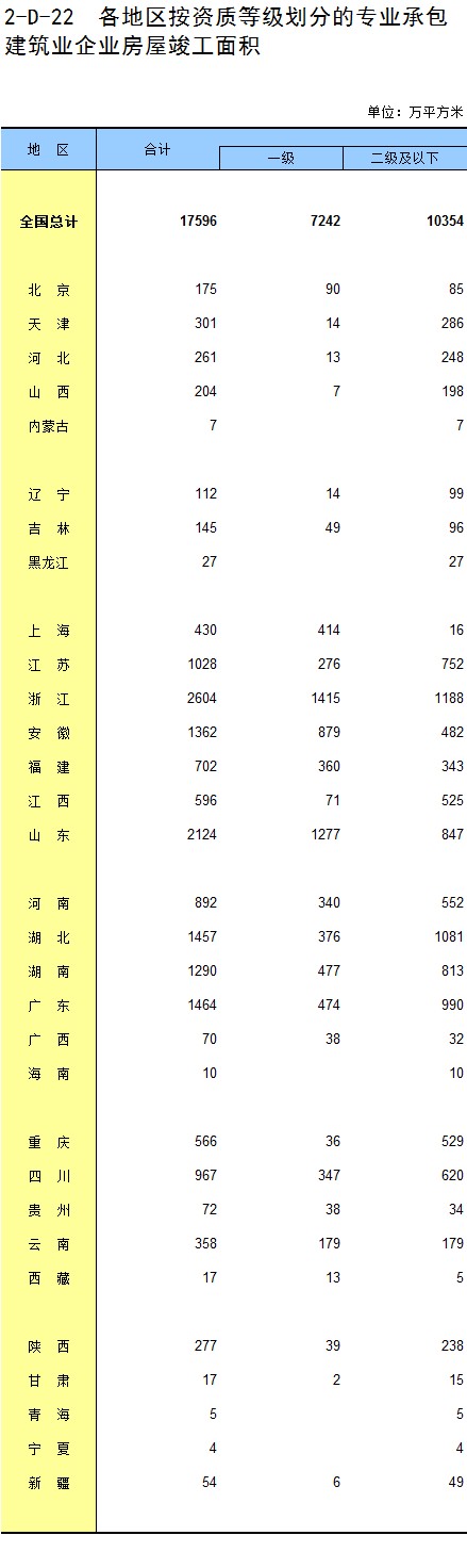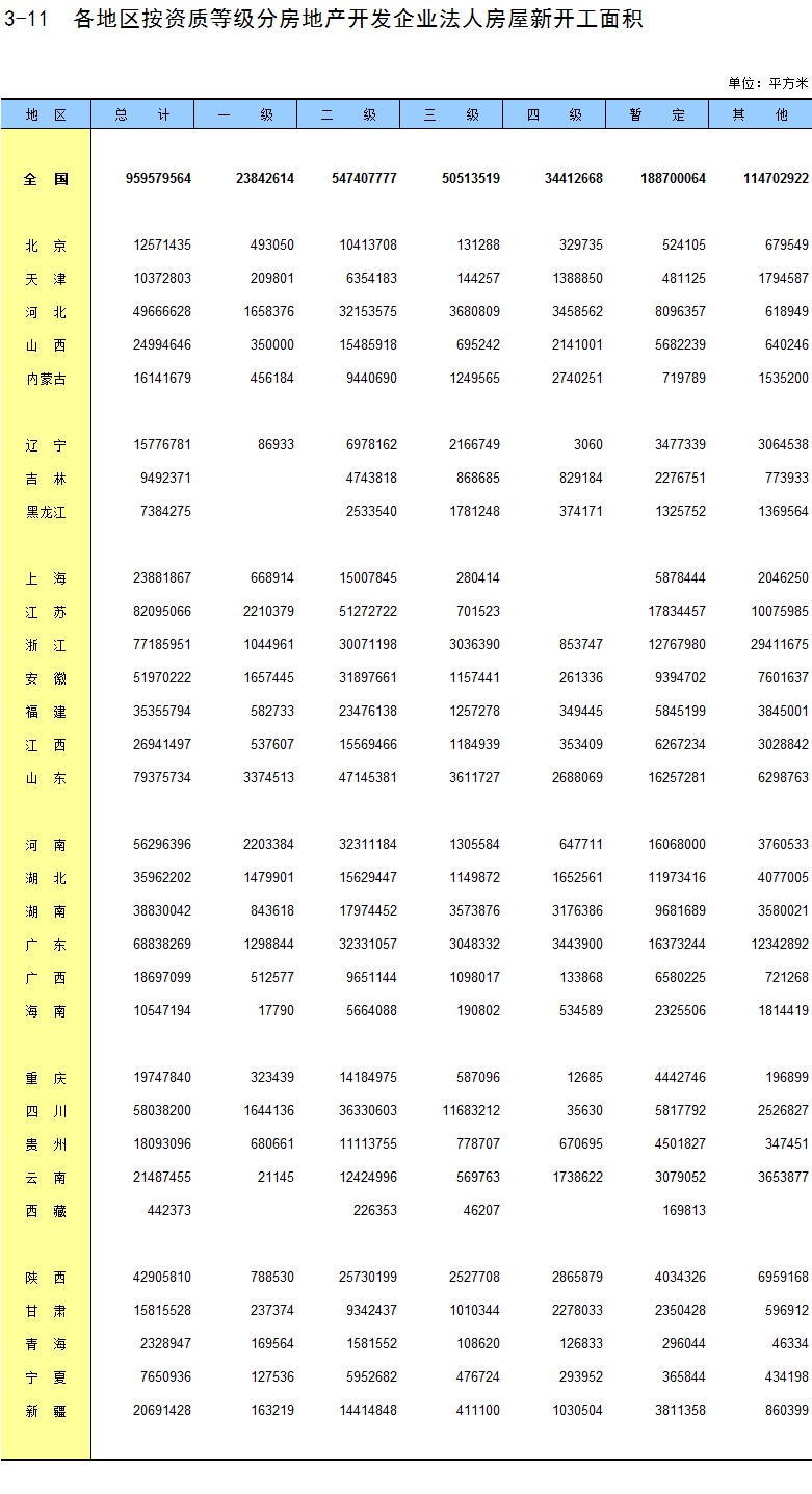 3-11 各地区按资质等级分房地产开发企业法人房屋新开工面积