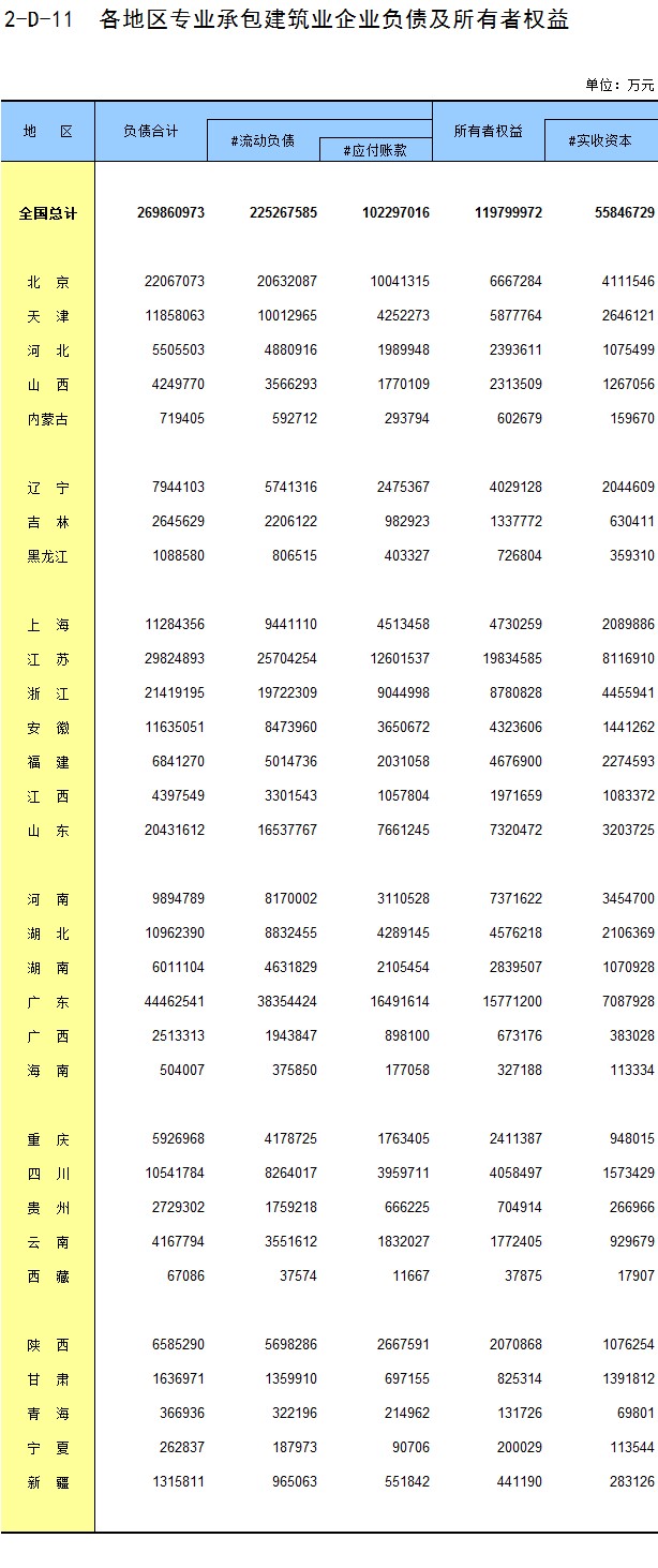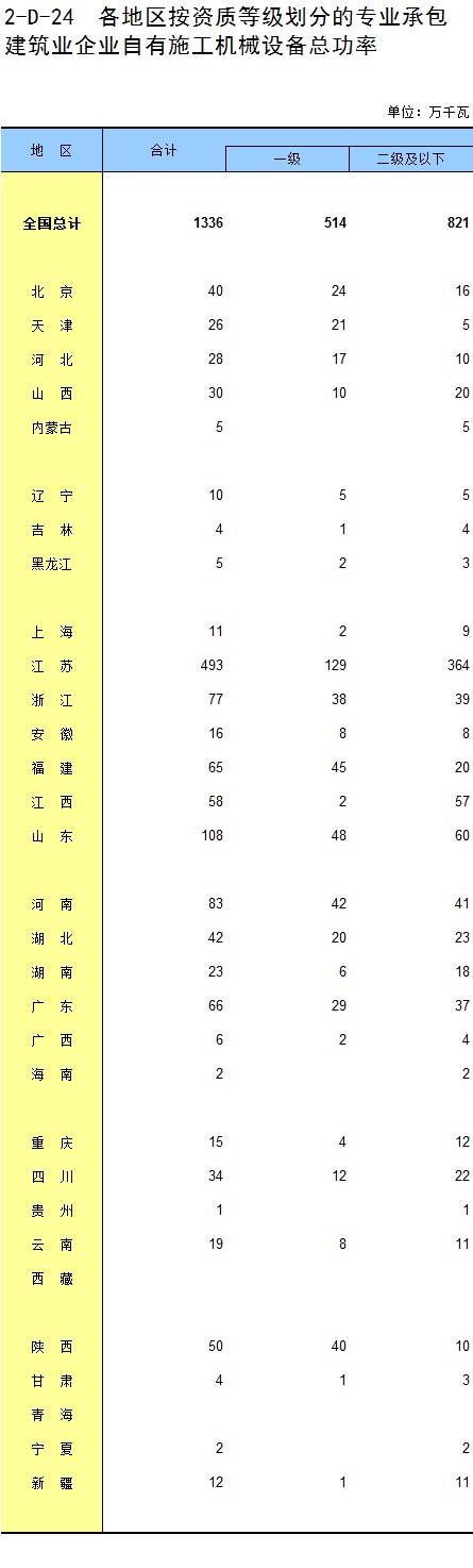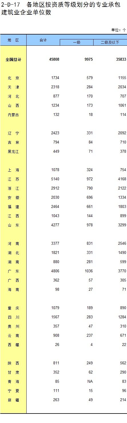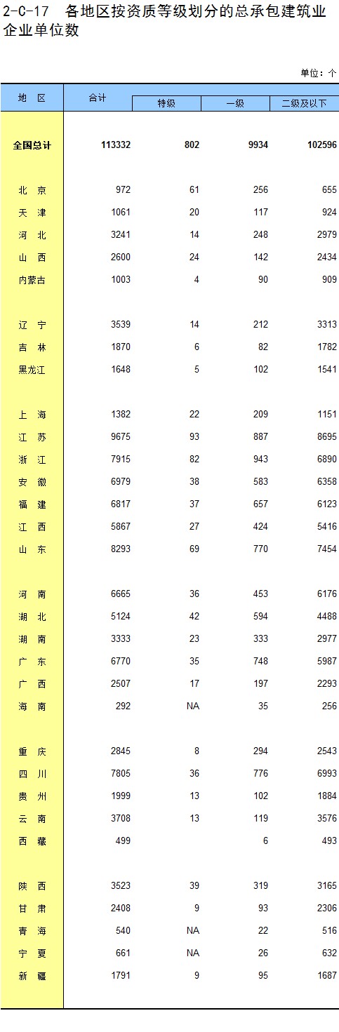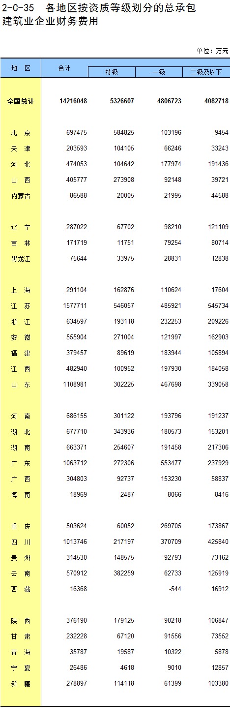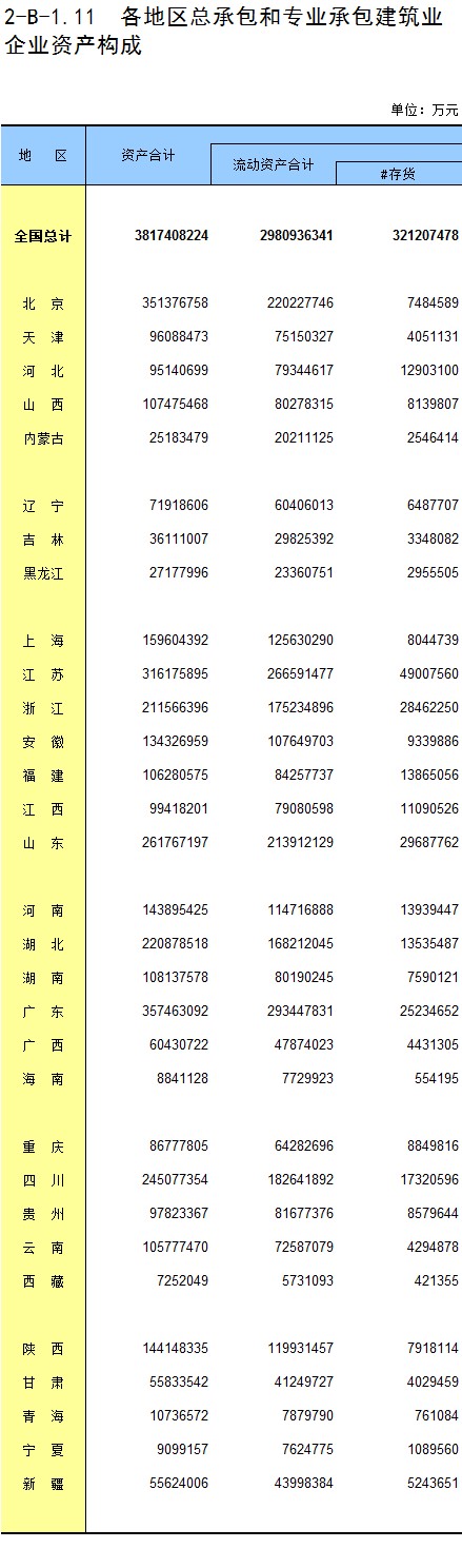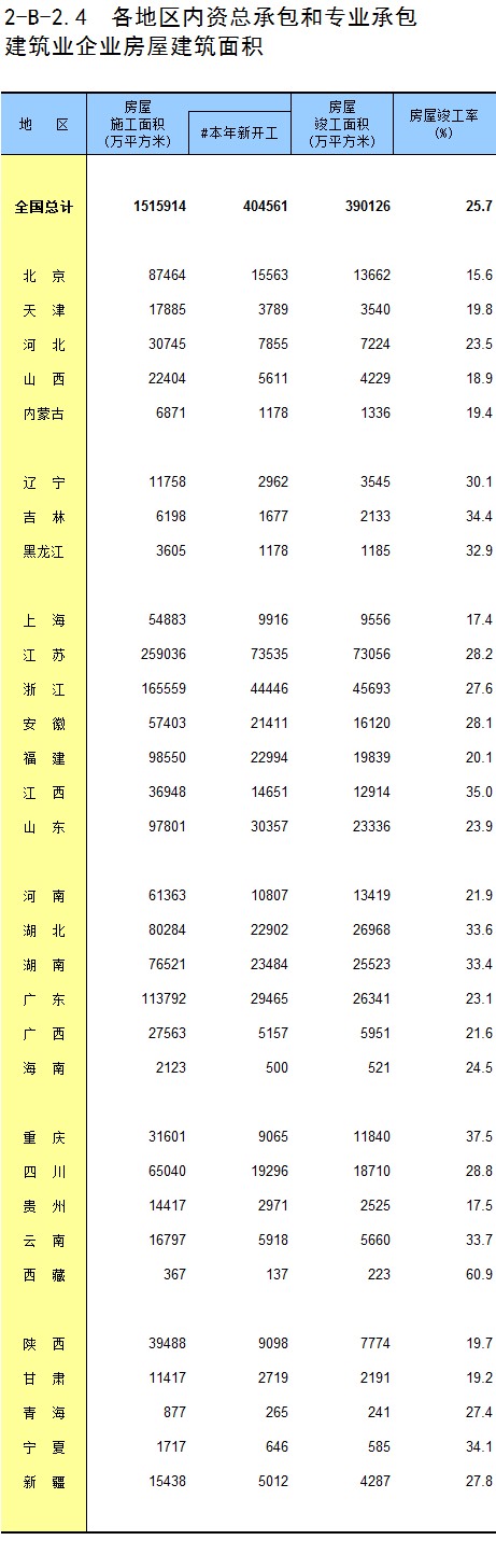 3-11 各地区按资质等级分房地产开发企业法人房屋新开工面积