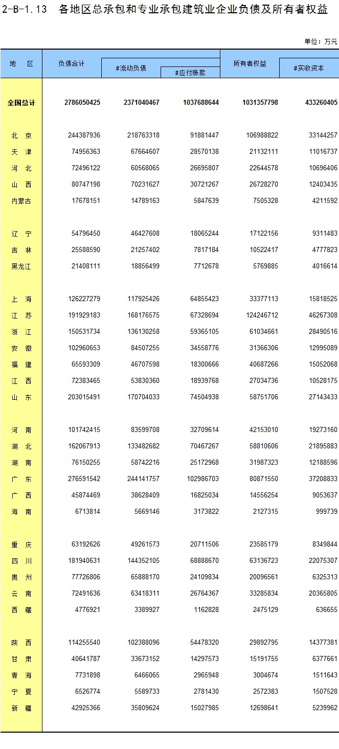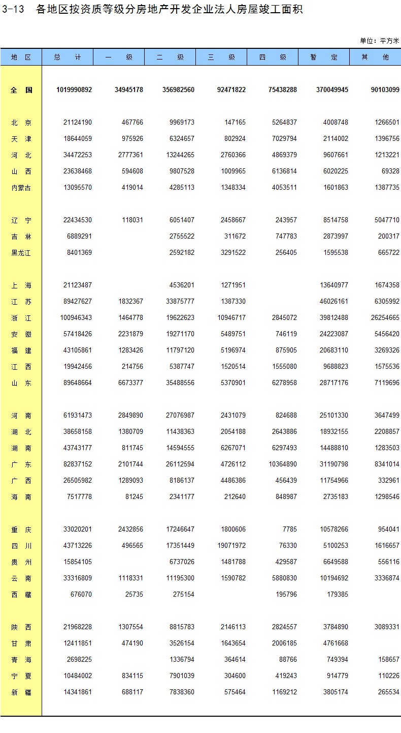 3-13 各地区按资质等级分房地产开发企业法人房屋竣工面积