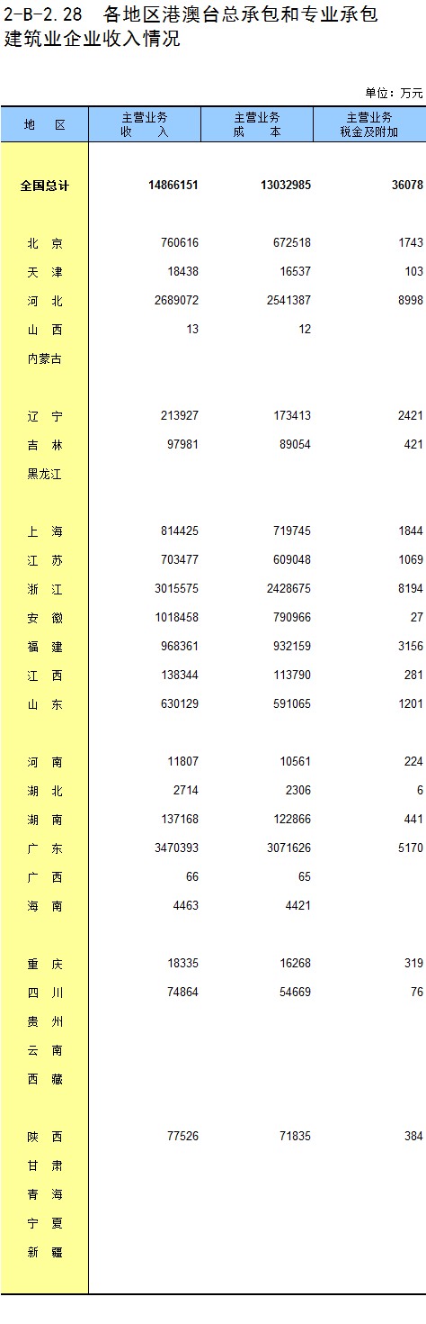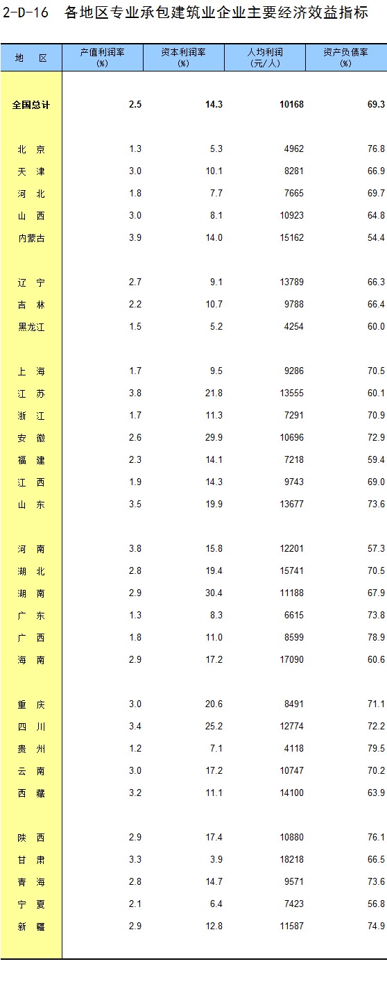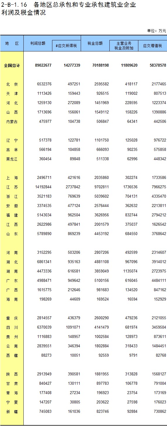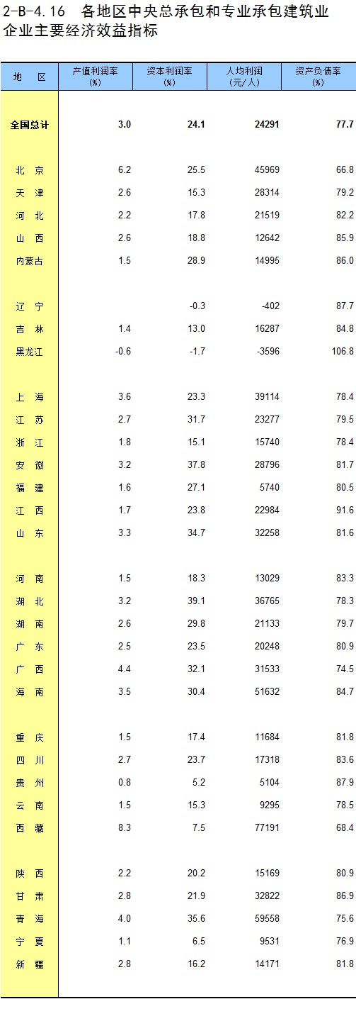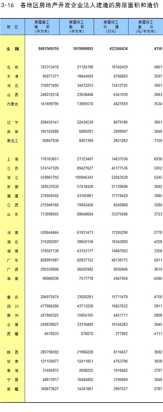 3-16 各地区房地产开发企业法人建造的房屋面积和造价