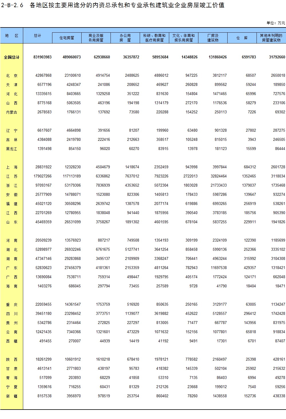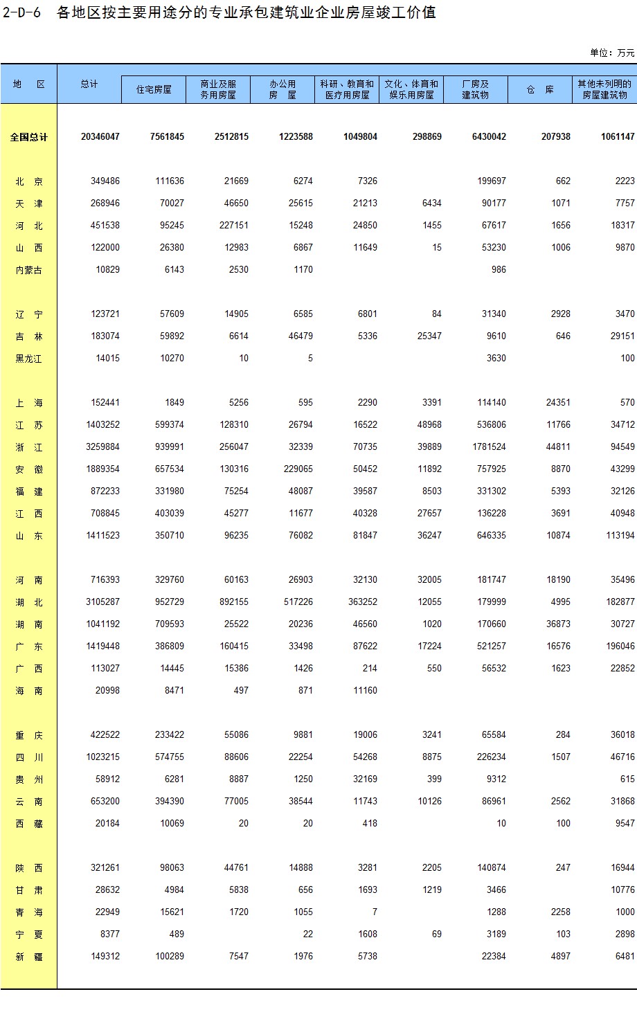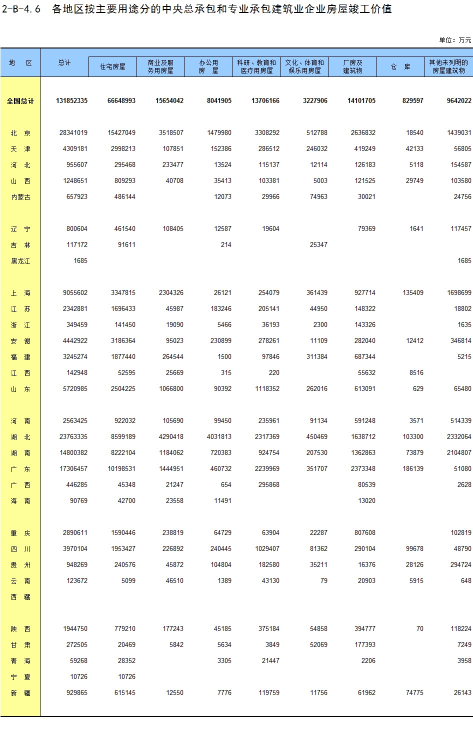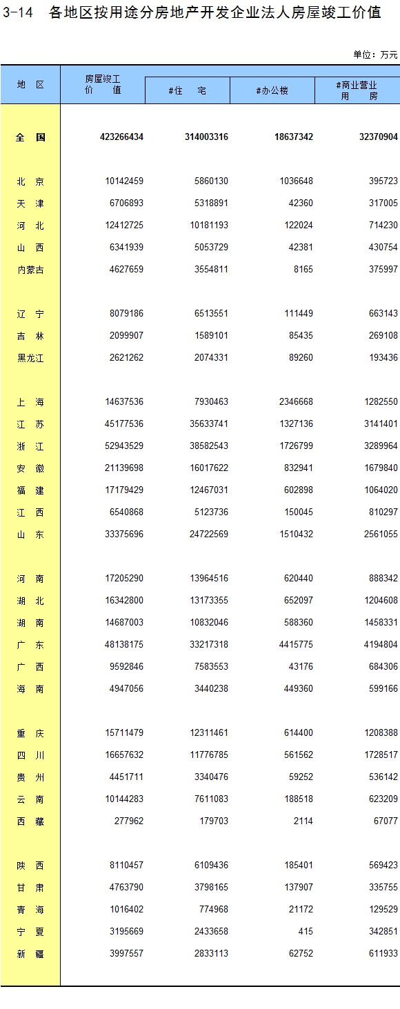 3-14 各地区按用途分房地产开发企业法人房屋竣工价值
