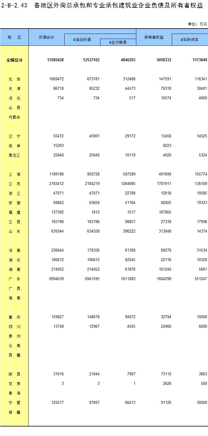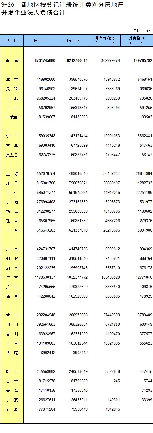 3-26 各地区按登记注册统计类别分房地产开发企业法人负债合计