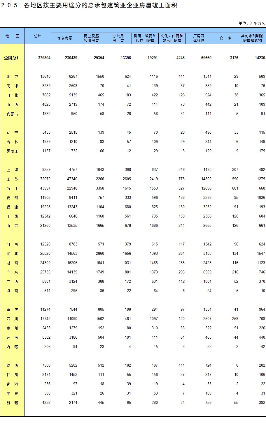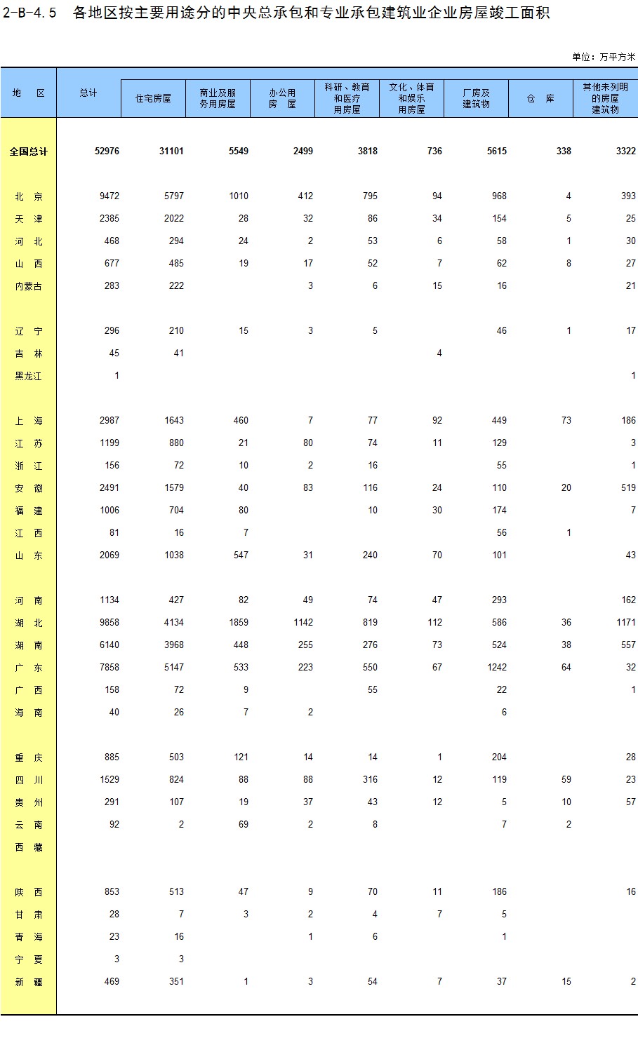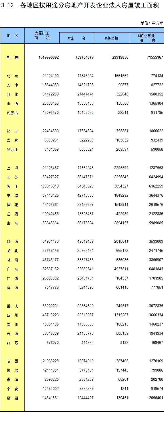 3-12 各地区按用途分房地产开发企业法人房屋竣工面积