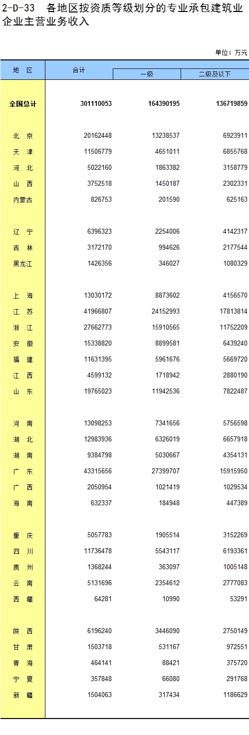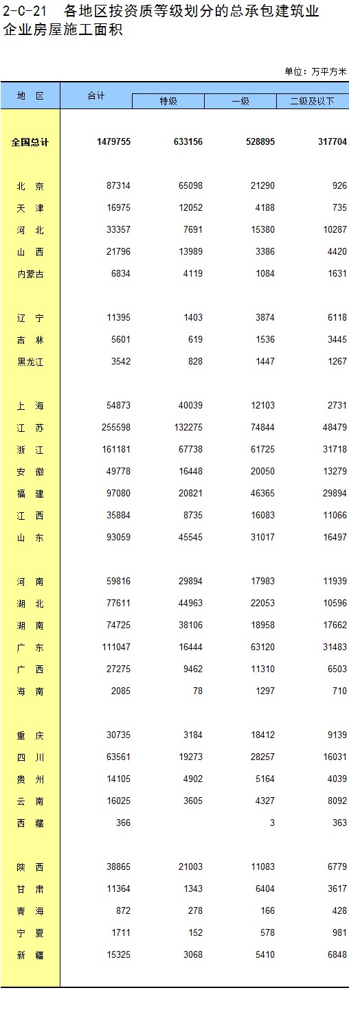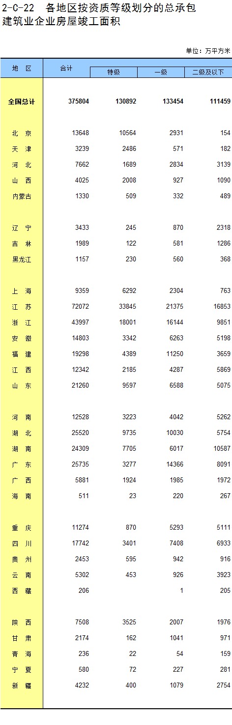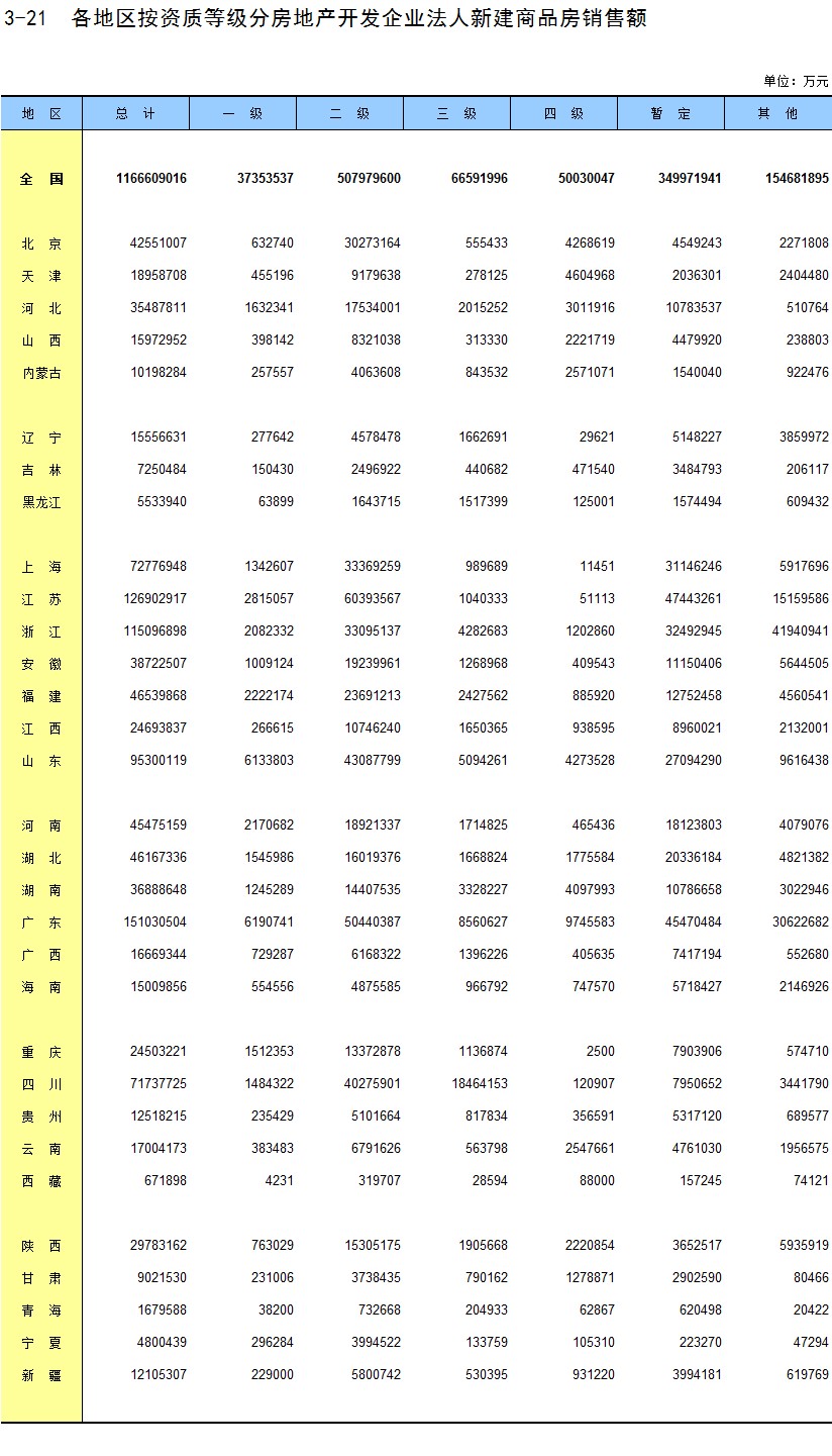 3-21 各地区按资质等级分房地产开发企业法人新建商品房销售额