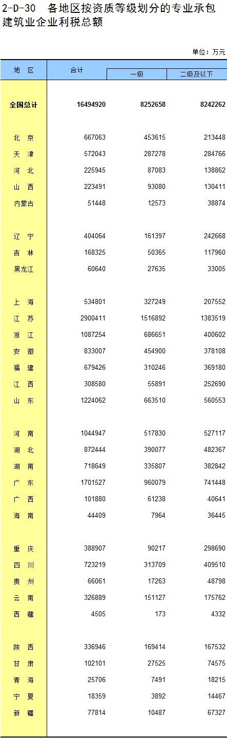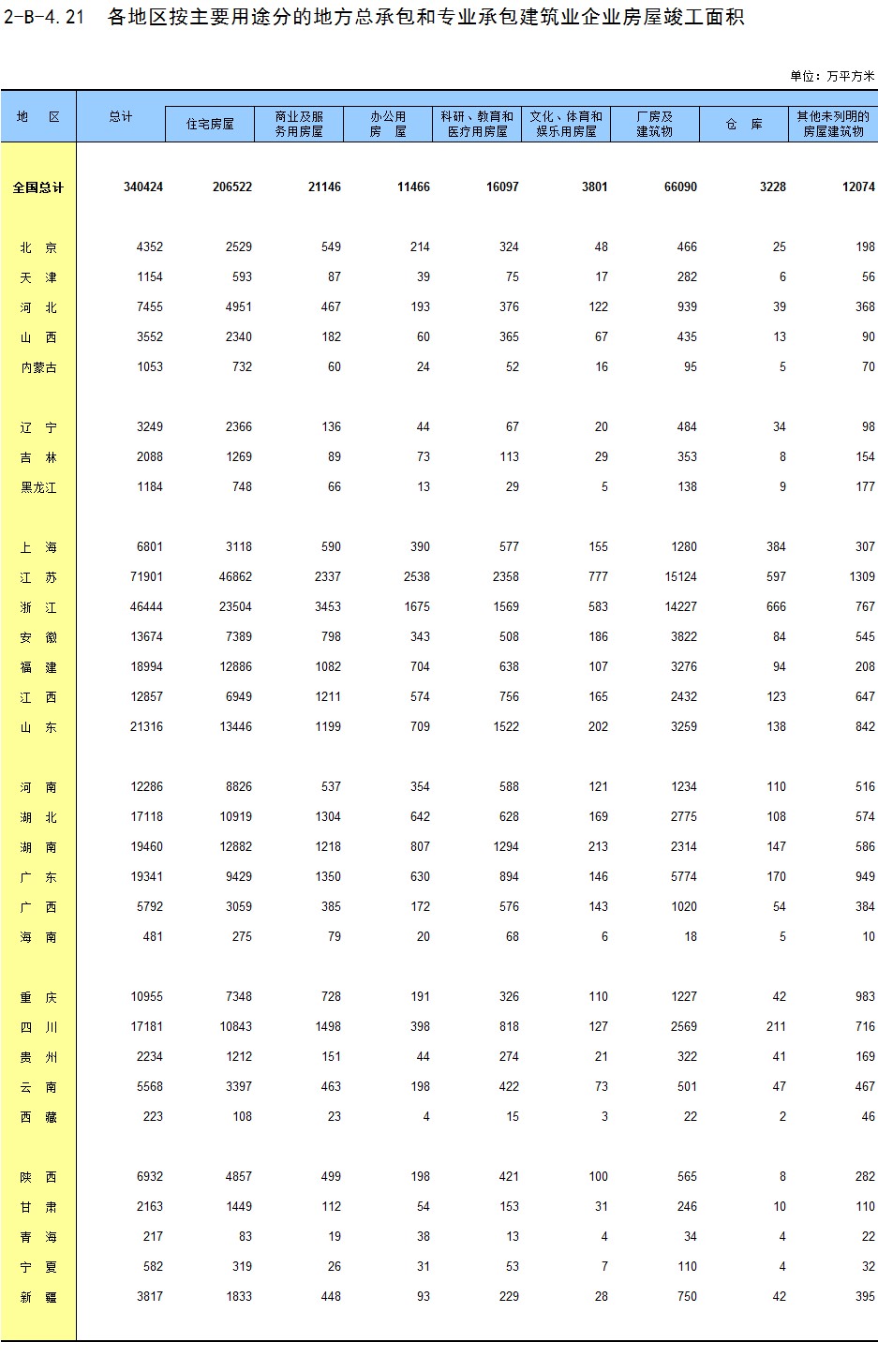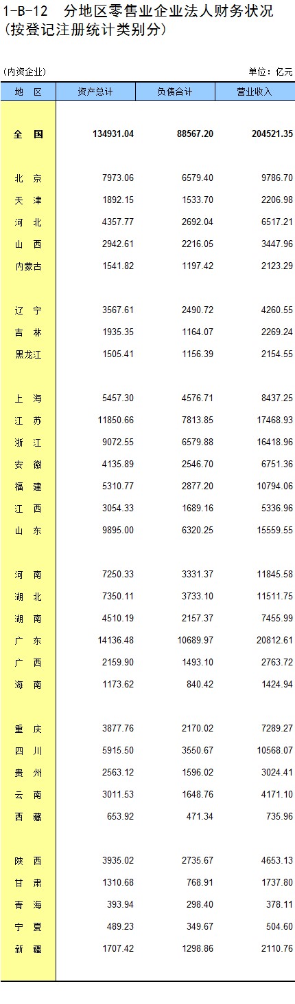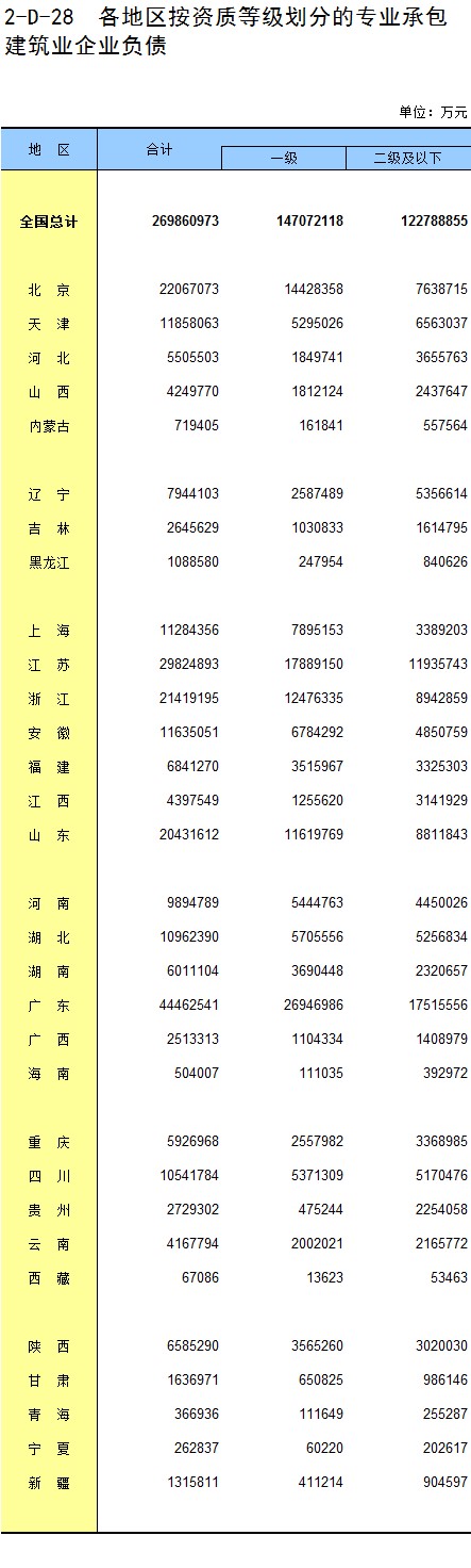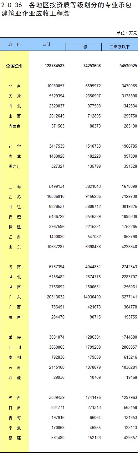 3-21 各地区按资质等级分房地产开发企业法人新建商品房销售额