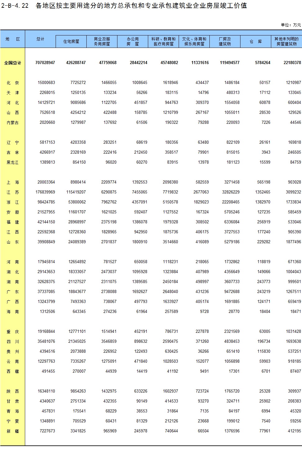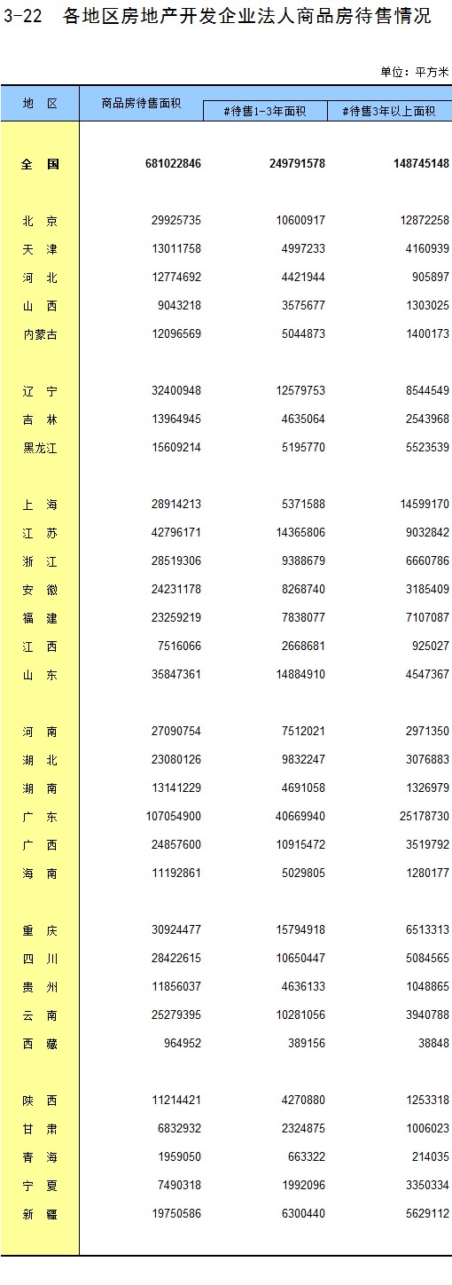 3-22 各地区房地产开发企业法人商品房待售情况