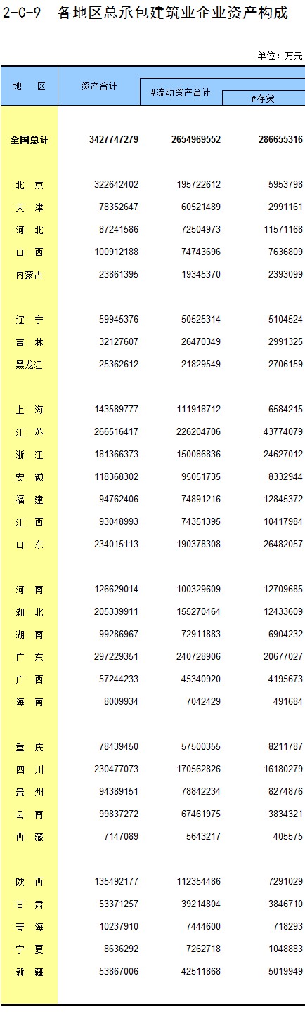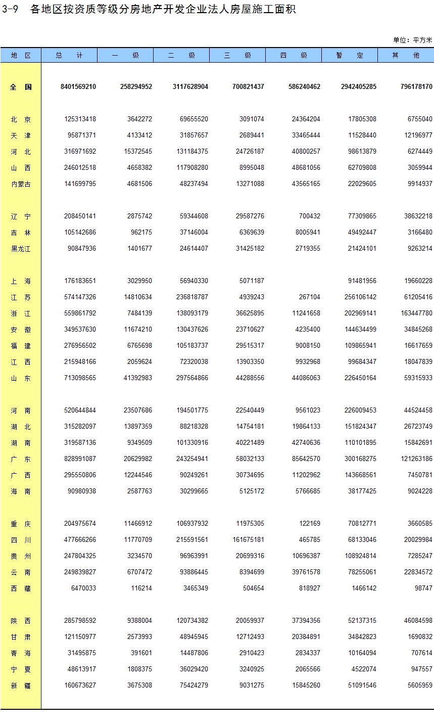 3-9 各地区按资质等级分房地产开发企业法人房屋施工面积