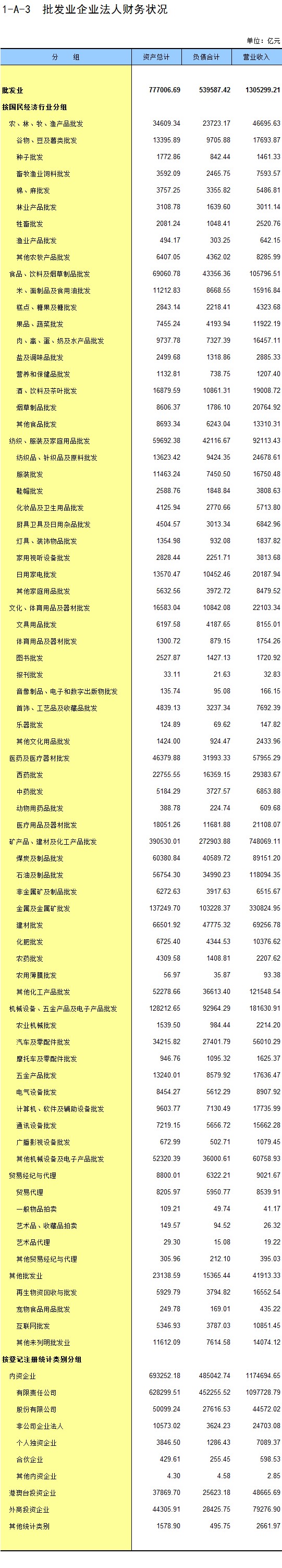 3-C-1 按登记注册统计类别和控股情况分文化批发和零售业企业法人主要财务指标