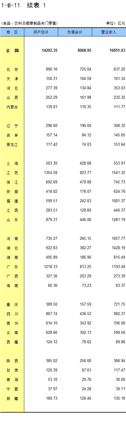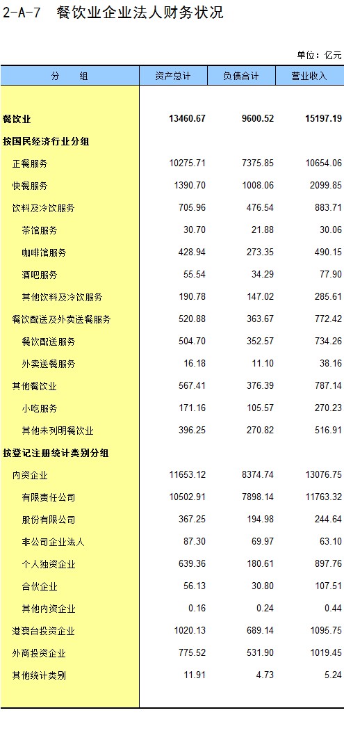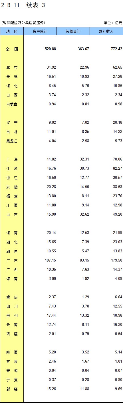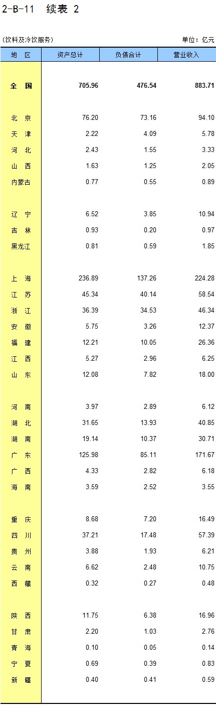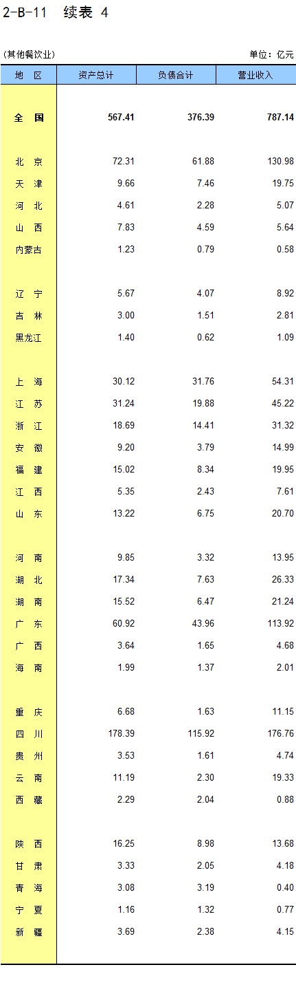 2-B-11 分地区餐饮业企业法人财务状况(按国民经济行业分)