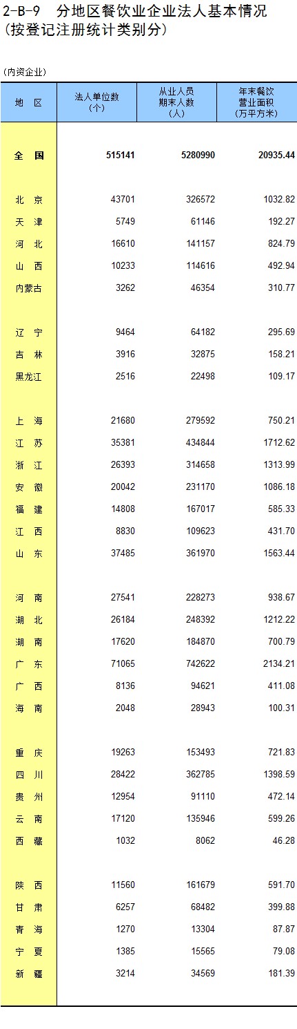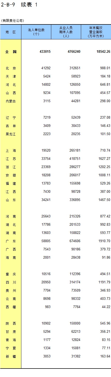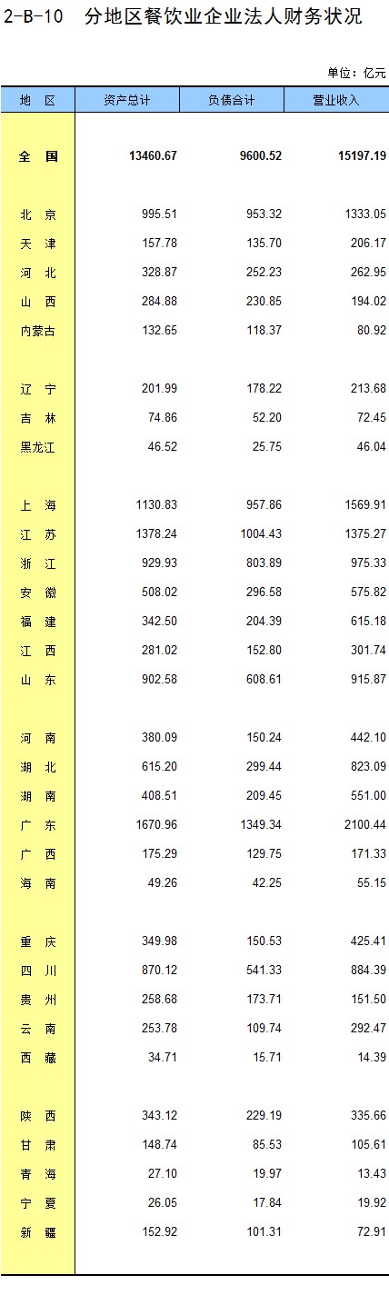 2-B-10 分地区餐饮业企业法人财务状况