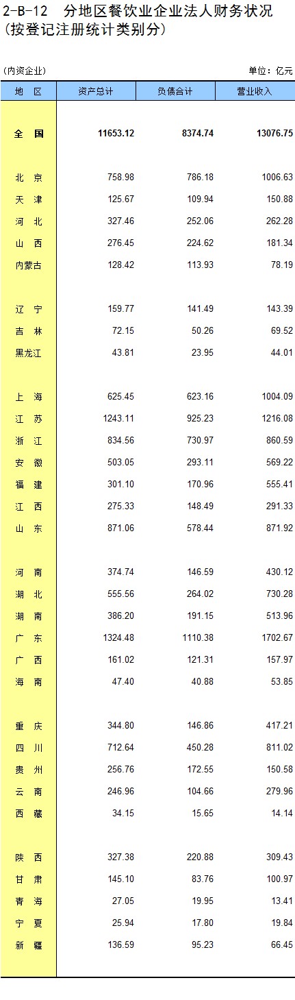 2-B-12 分地区餐饮业企业法人财务状况(按登记注册统计类别分)