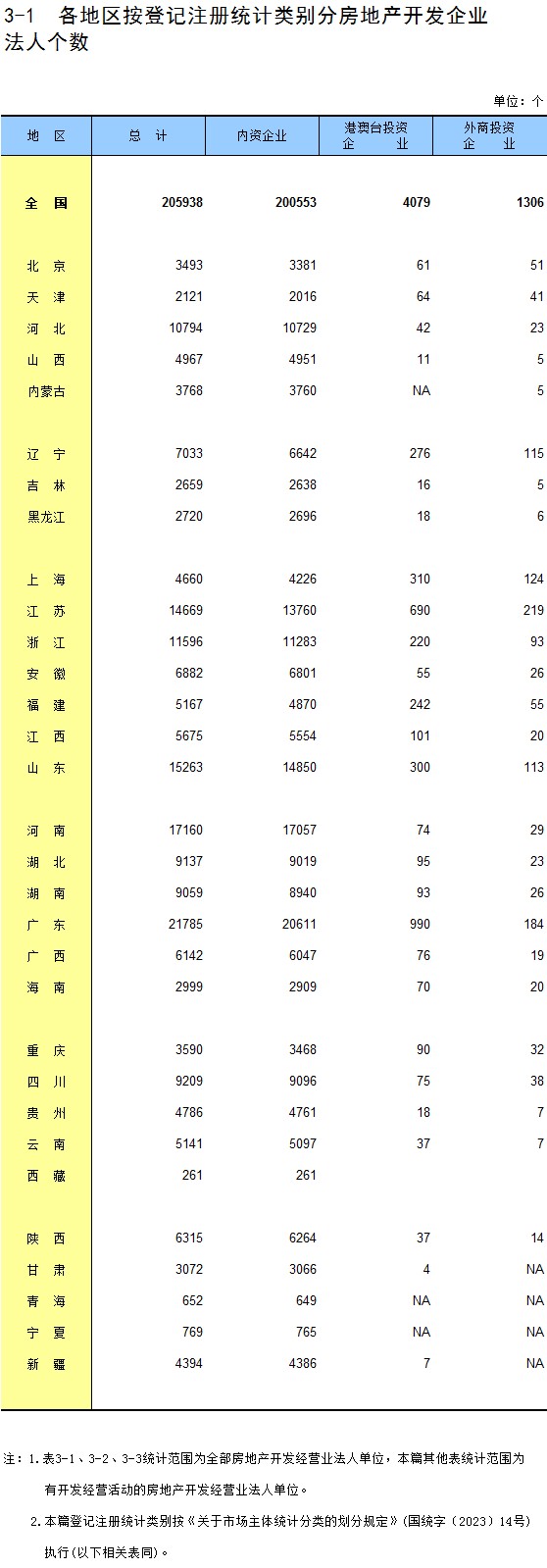3-1 各地区按登记注册统计类别分房地产开发企业法人个数