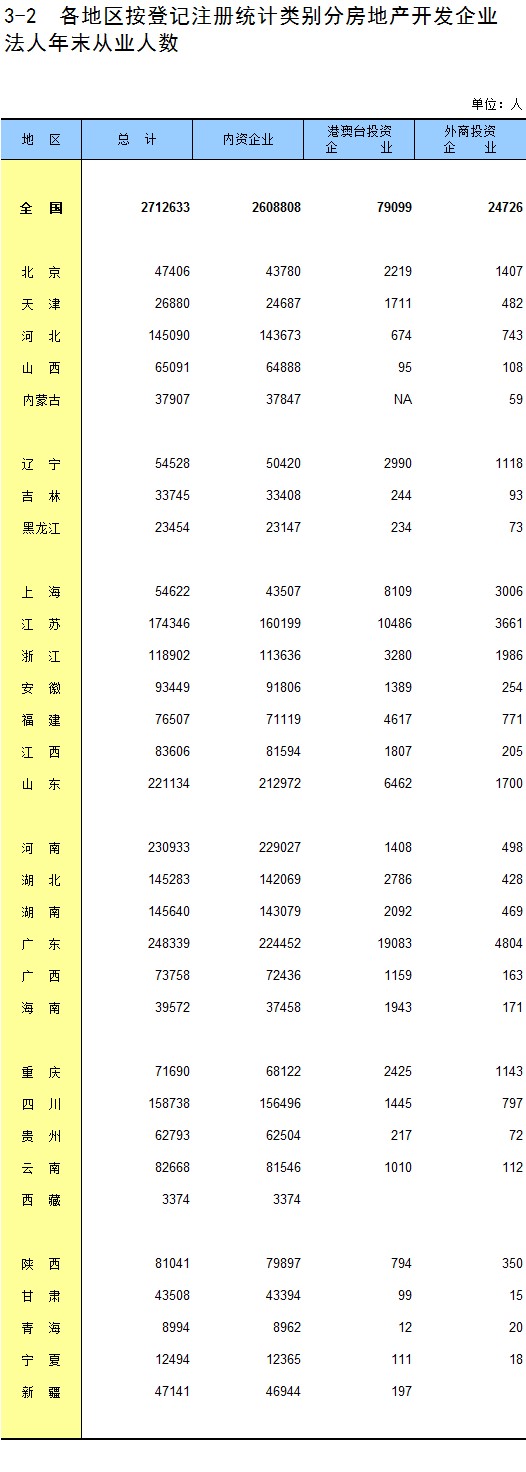 3-2 各地区按登记注册统计类别分房地产开发企业法人年末从业人数