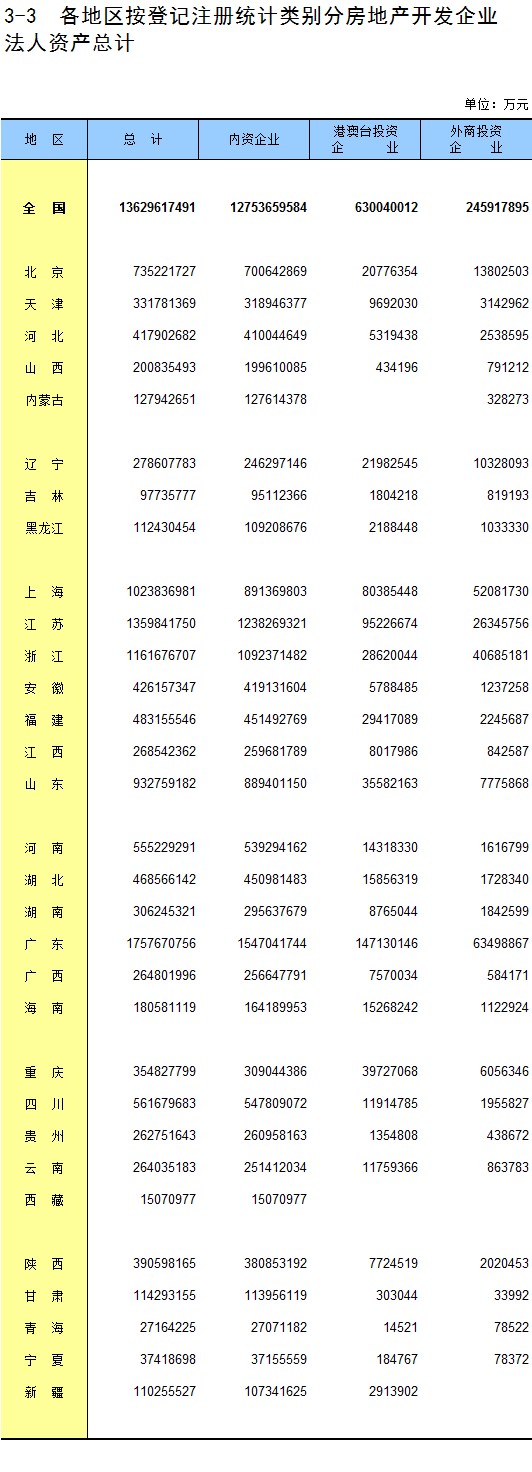 3-3 各地区按登记注册统计类别分房地产开发企业法人资产总计
