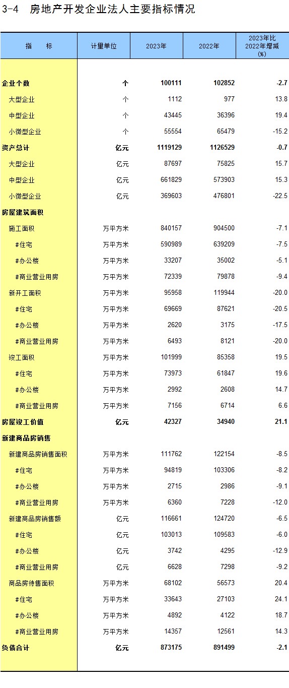 3-4 房地产开发企业法人主要指标情况