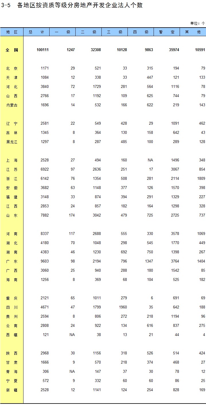 3-5 各地区按资质等级分房地产开发企业法人个数