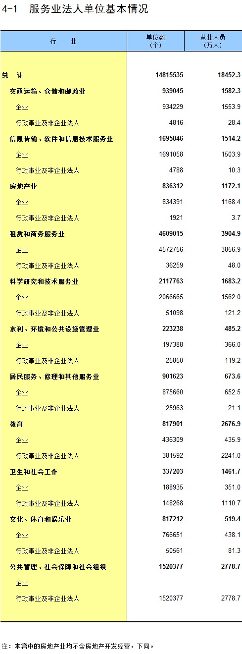 第五篇 服务业行政事业及非企业法人单位篇
