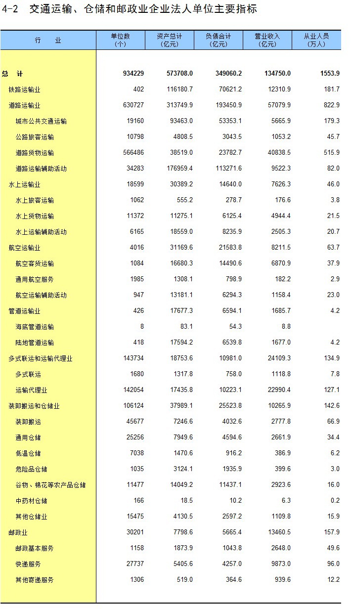4-2 交通运输、仓储和邮政业企业法人单位主要指标