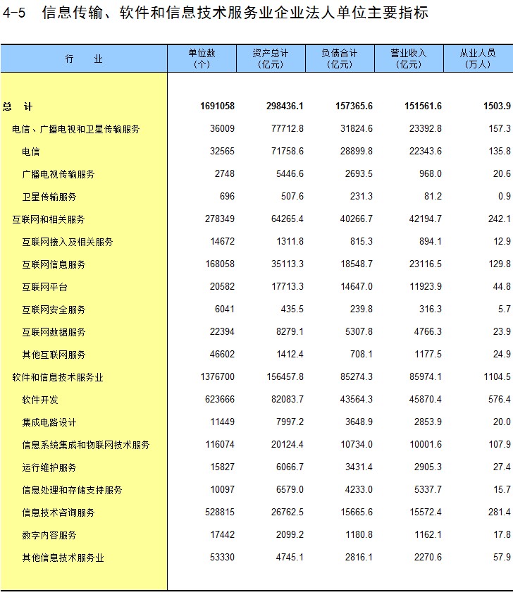 4-5 信息传输、软件和信息技术服务业企业法人单位主要指标