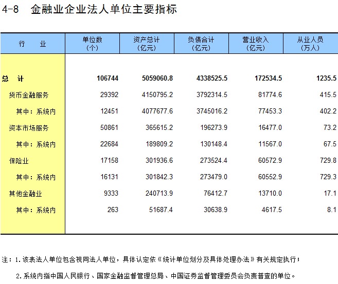 4-8 金融业企业法人单位主要指标
