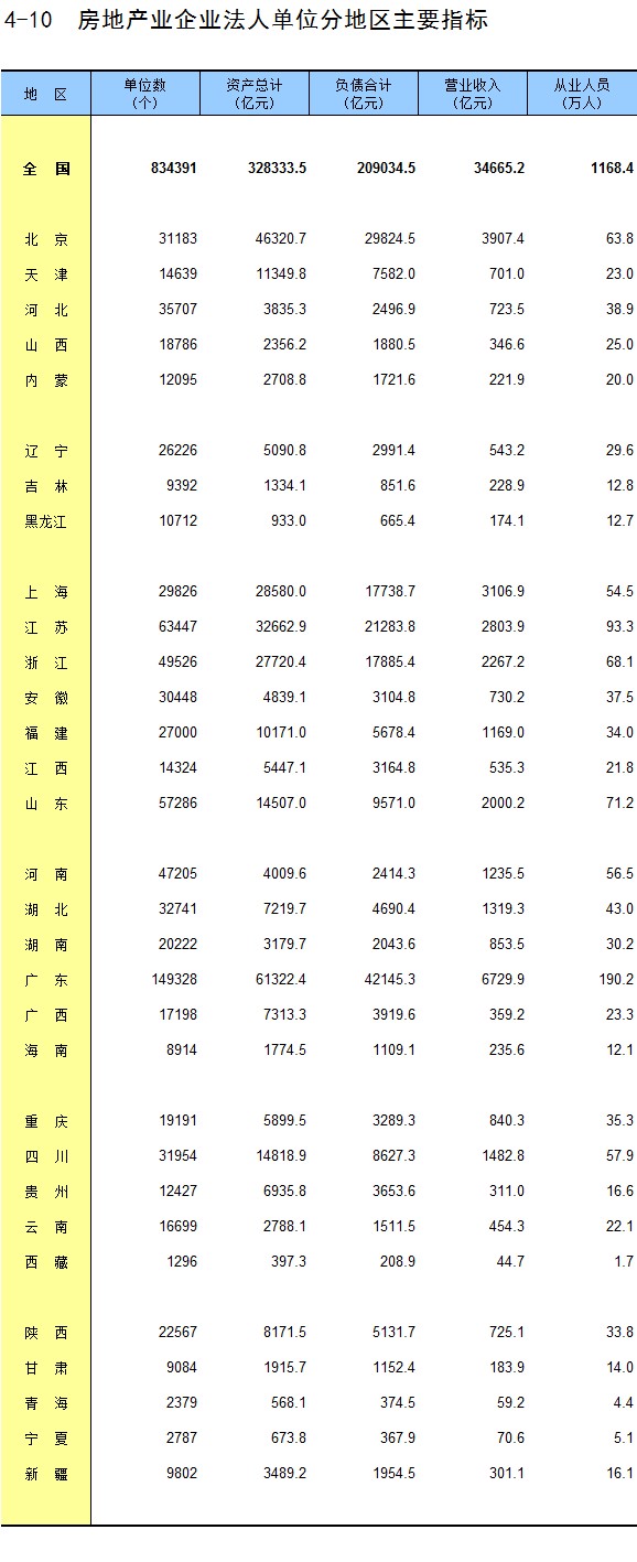 4-10 房地产业企业法人单位分地区主要指标