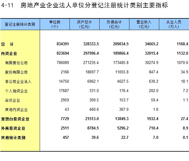 4-11 房地产业企业法人单位分登记注册统计类别主要指标