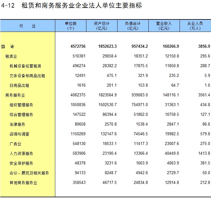 4-12 租赁和商务服务业企业法人单位主要指标