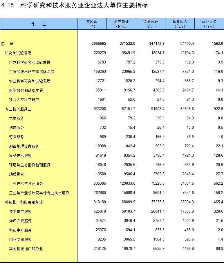 4-15 科学研究和技术服务业企业法人单位主要指标