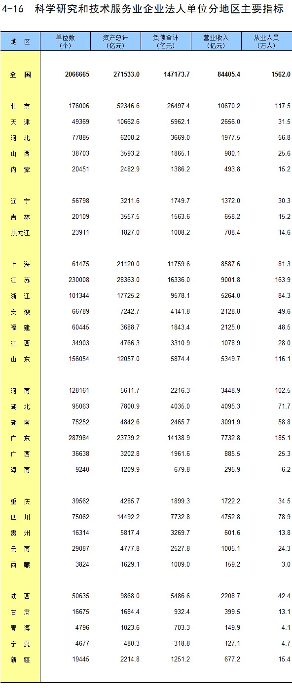 4-16 科学研究和技术服务业企业法人单位分地区主要指标