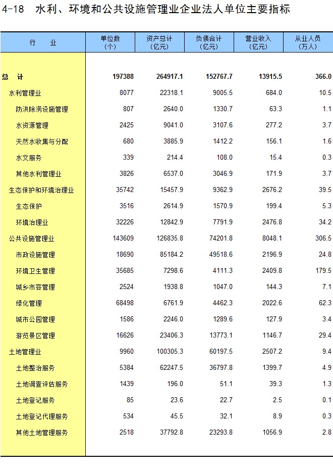 4-18 水利、环境和公共设施管理业企业法人单位主要指标