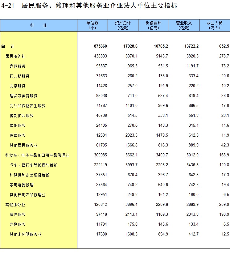 4-21 居民服务、修理和其他服务业企业法人单位主要指标