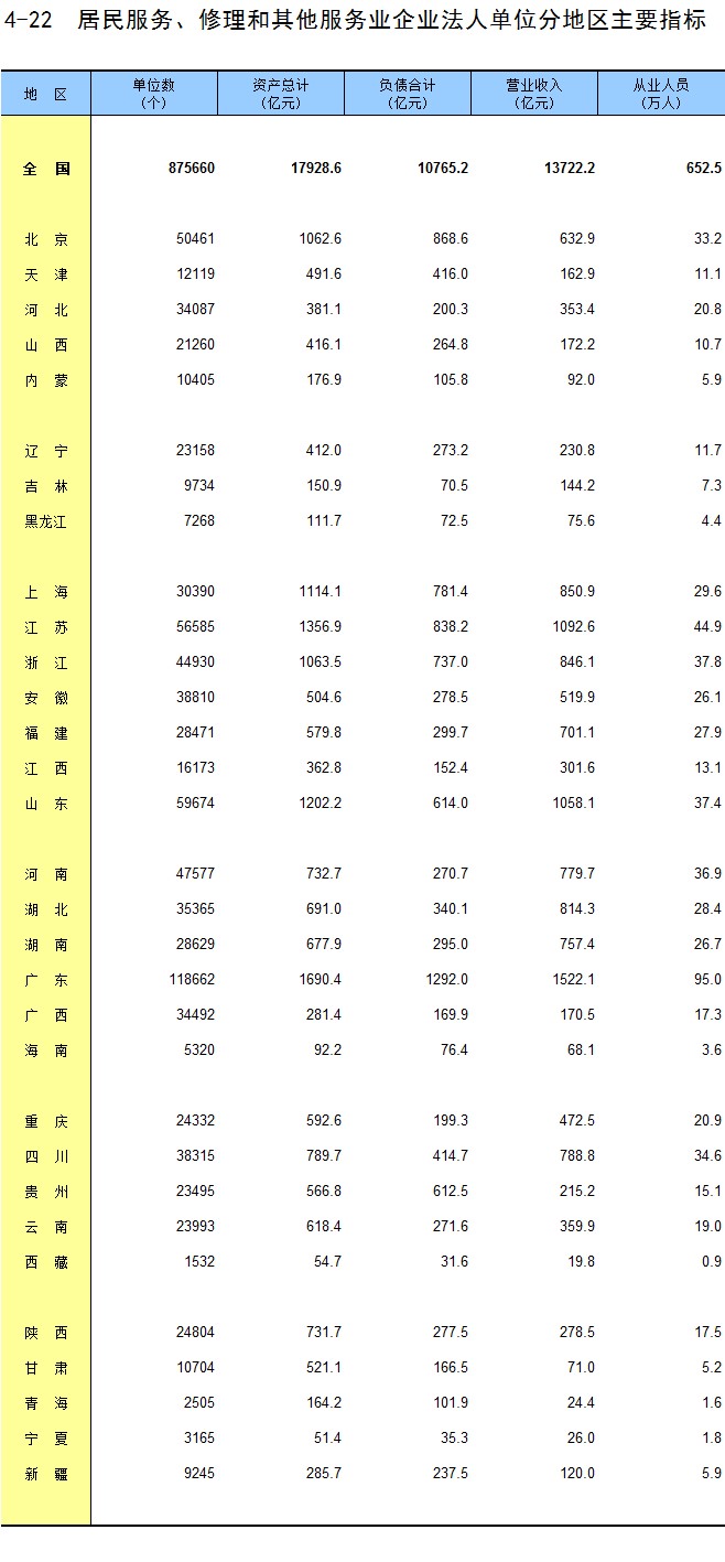 4-22 居民服务、修理和其他服务业企业法人单位分地区主要指标