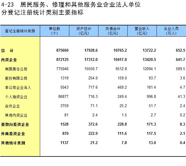 4-23 居民服务、修理和其他服务业企业法人单位分登记注册统计类别主要指标
