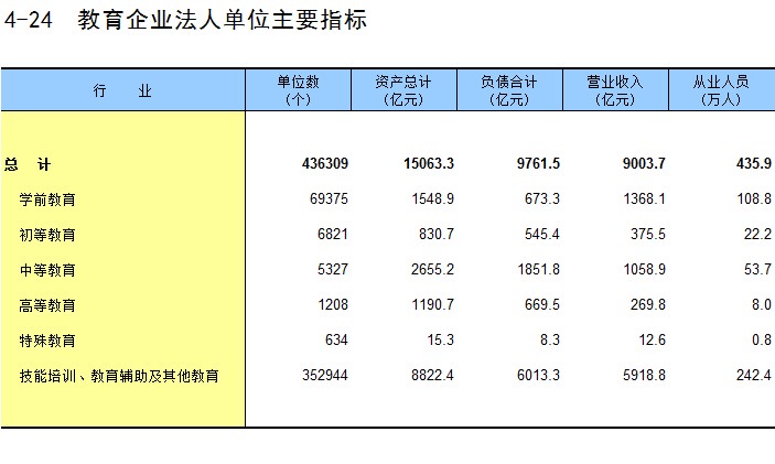 4-24 教育企业法人单位主要指标