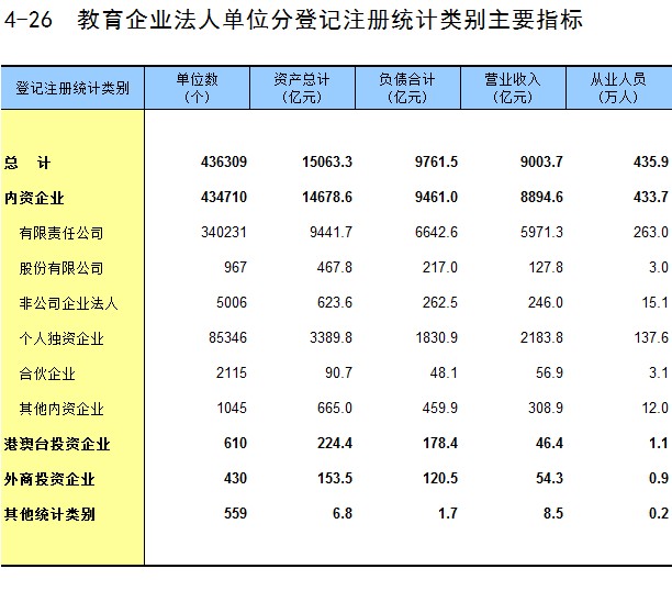 4-26 教育企业法人单位分登记注册统计类别主要指标