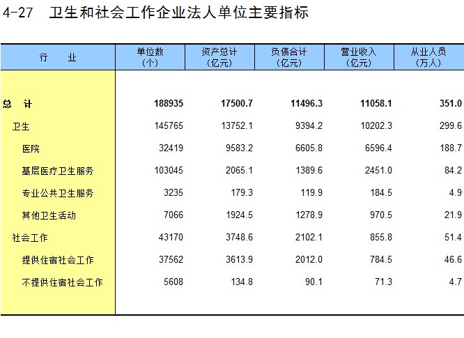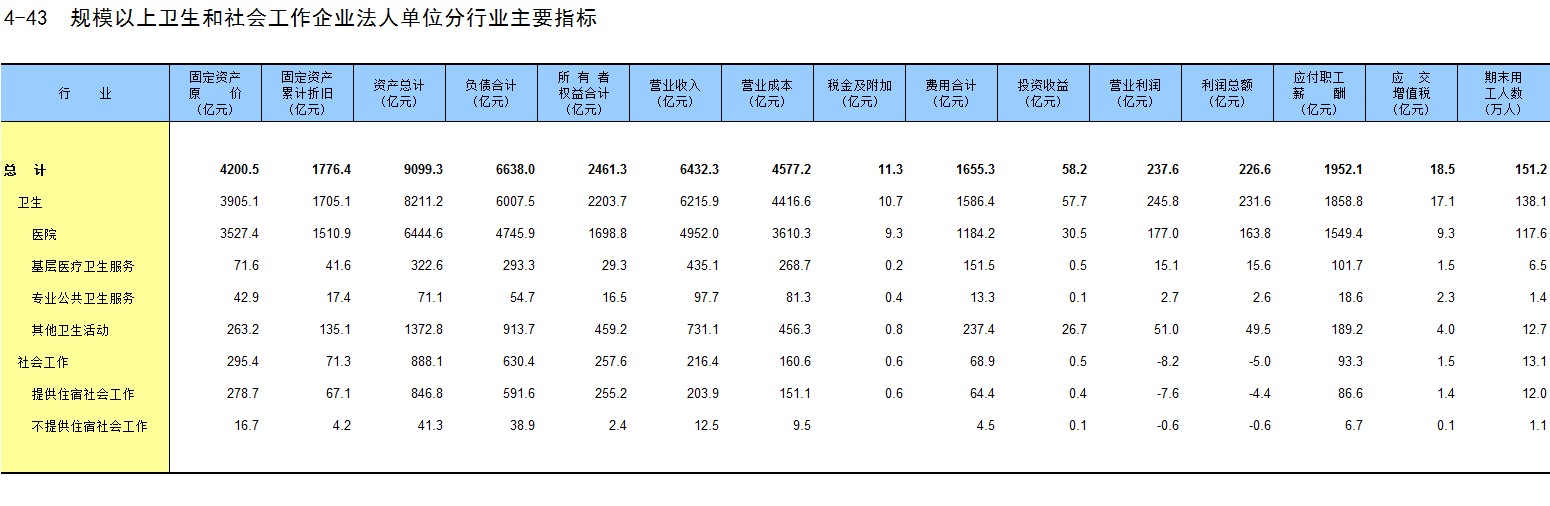 4-43 规模以上卫生和社会工作企业法人单位分行业主要指标