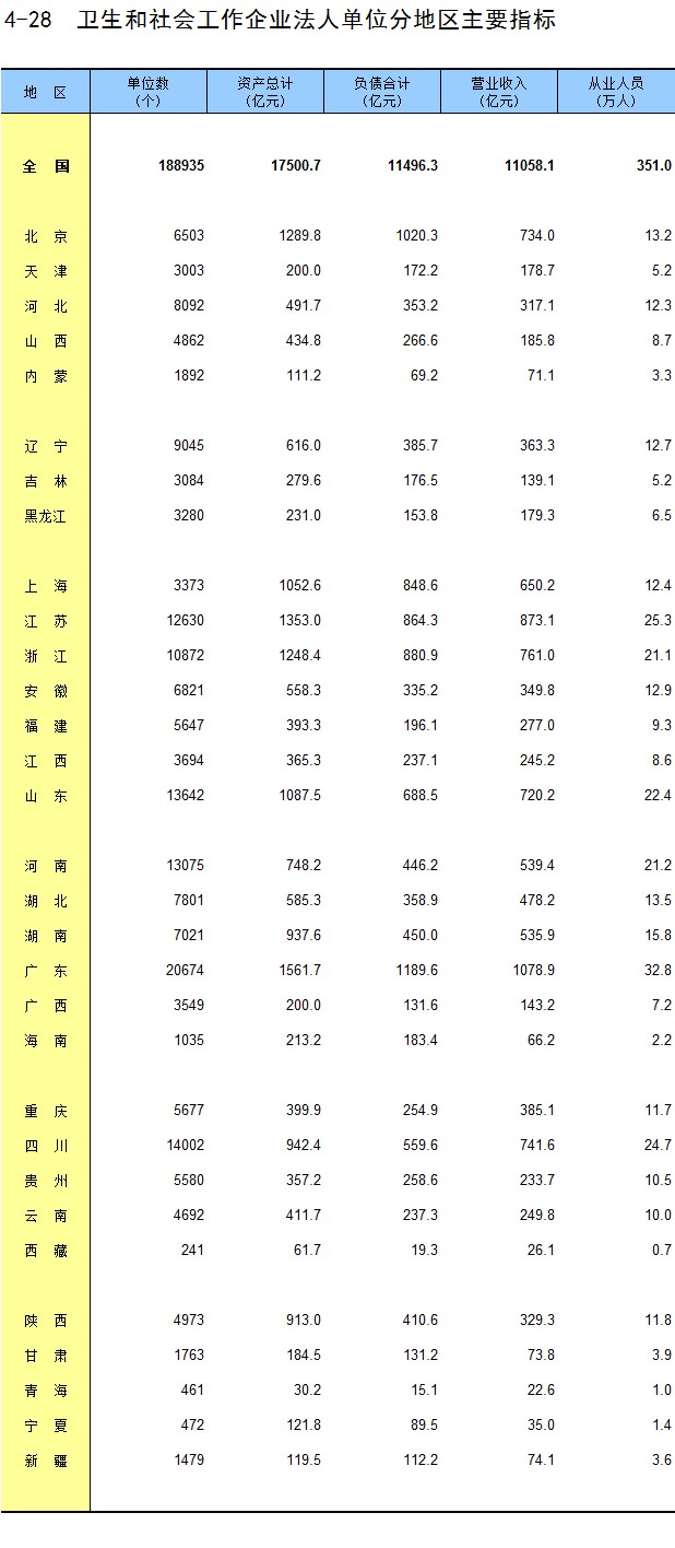 4-28 卫生和社会工作企业法人单位分地区主要指标
