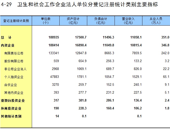 4-29 卫生和社会工作企业法人单位分登记注册统计类别主要指标