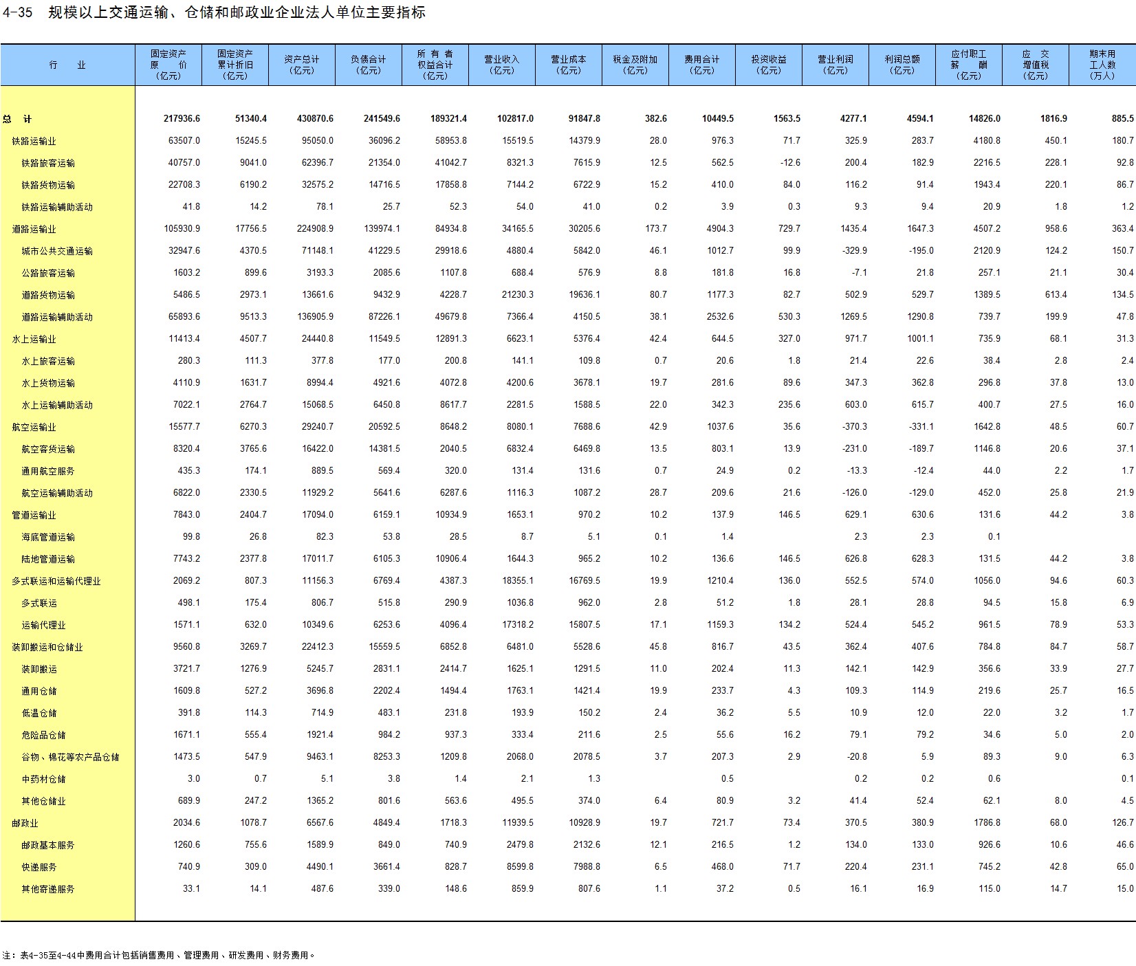 4-35 规模以上交通运输、仓储和邮政业企业法人单位主要指标
