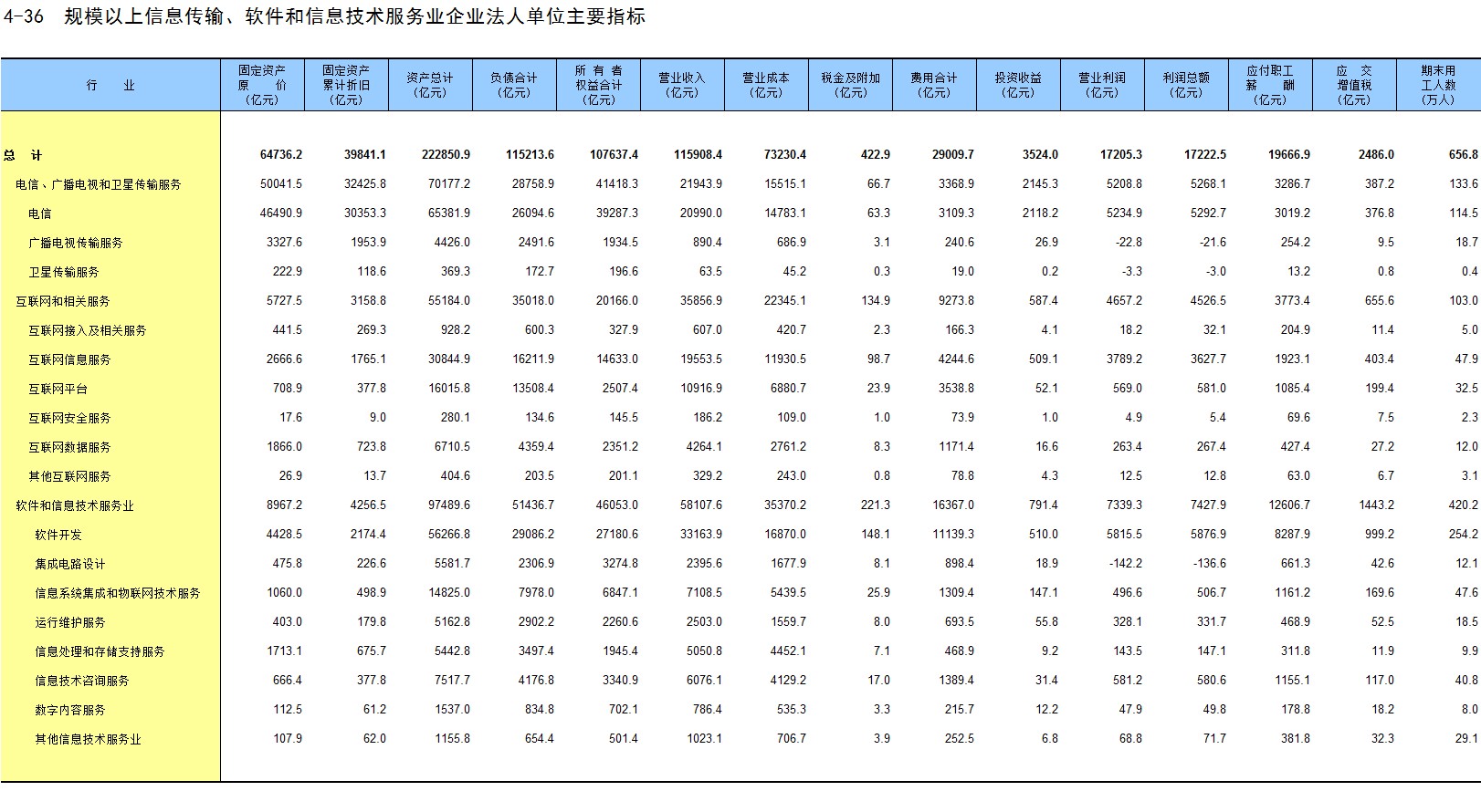 4-36 规模以上信息传输、软件和信息技术服务业企业法人单位主要指标
