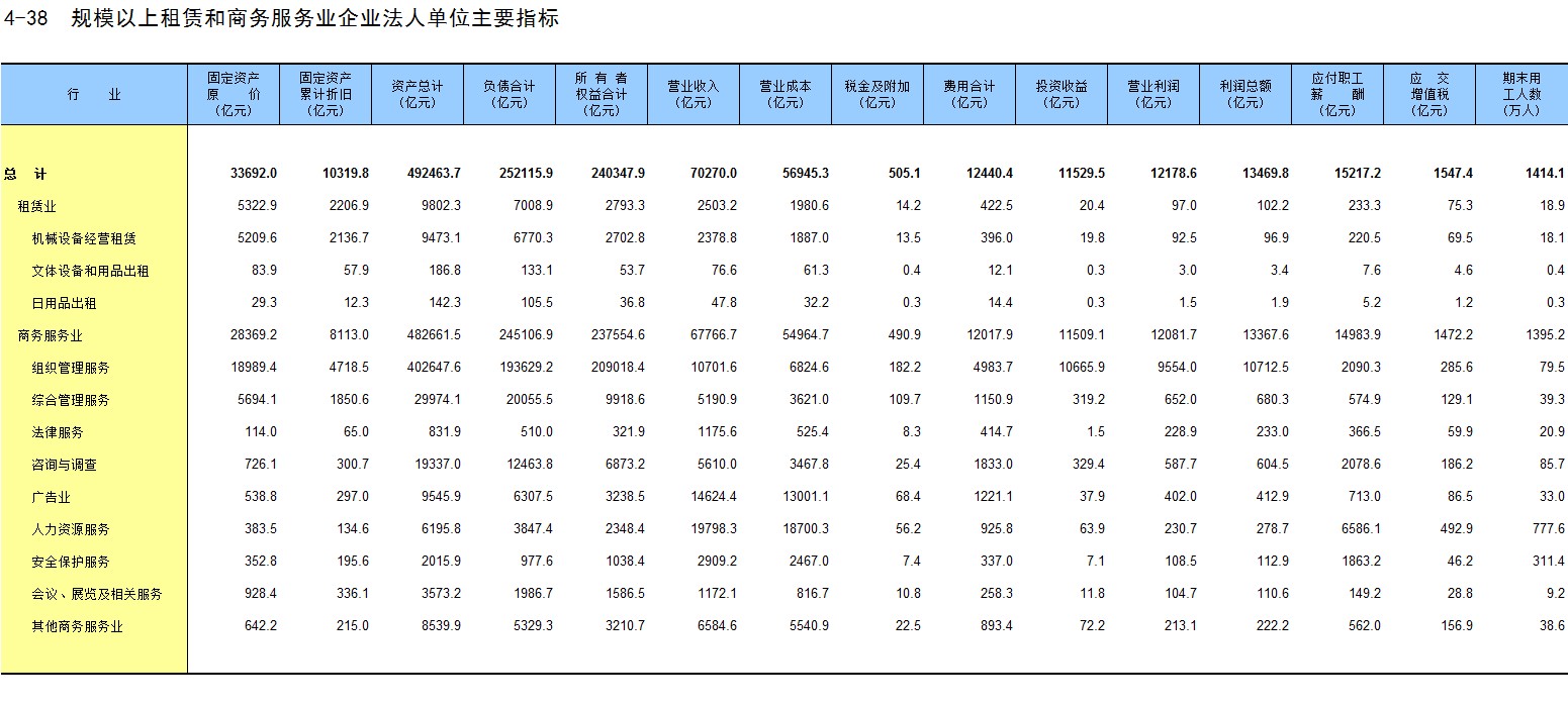 4-38 规模以上租赁和商务服务业企业法人单位主要指标