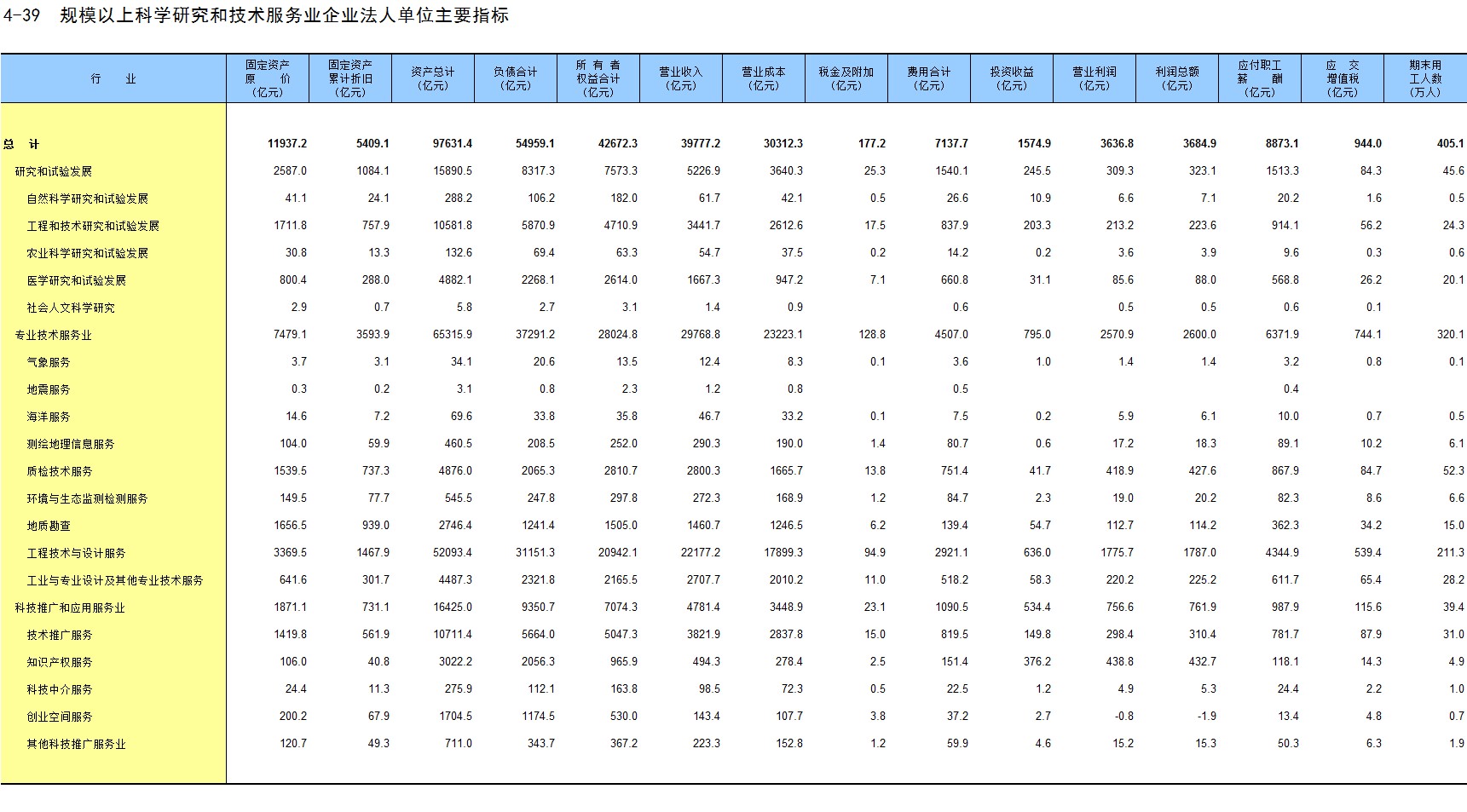 4-39 规模以上科学研究和技术服务业企业法人单位主要指标
