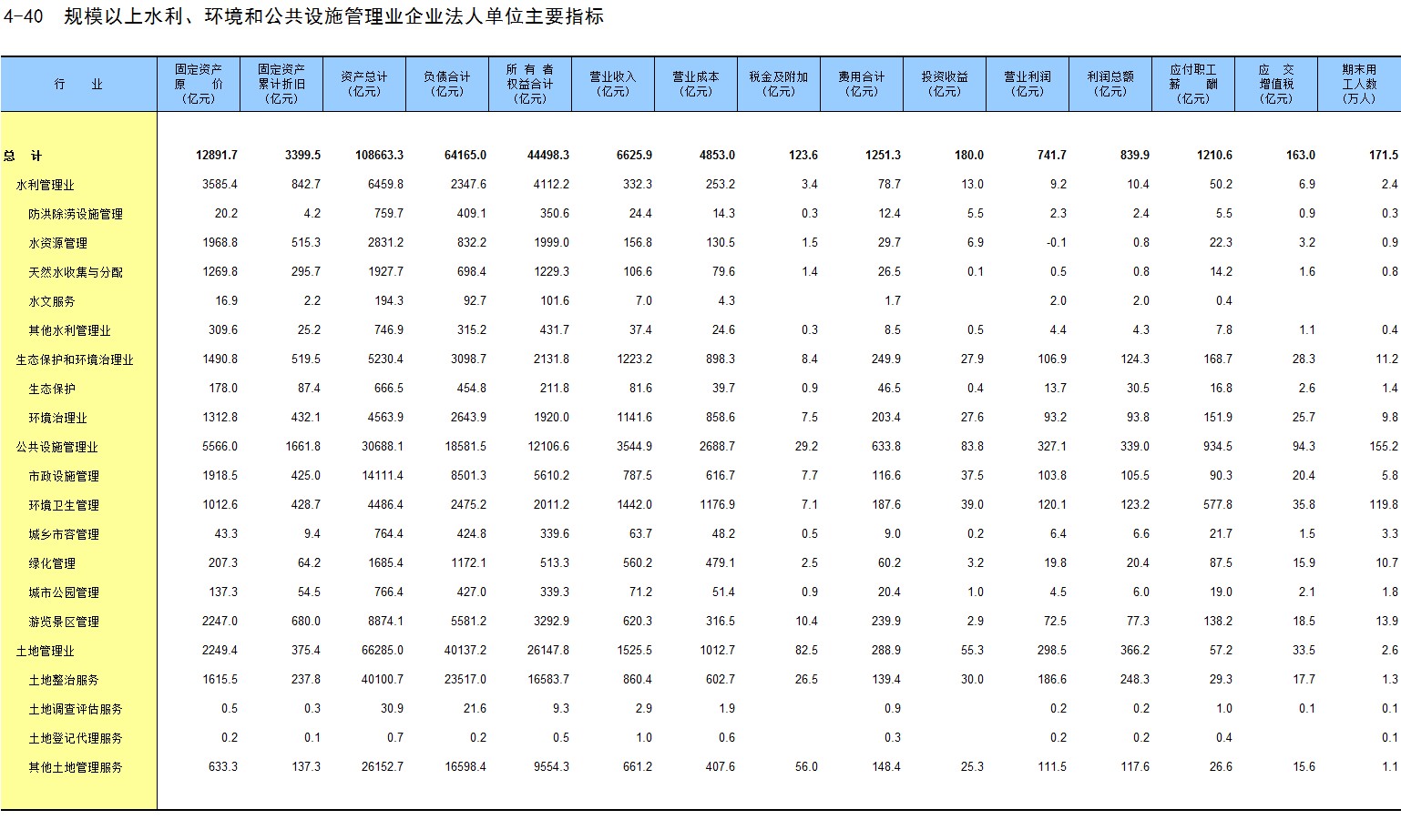 4-40 规模以上水利、环境和公共设施管理业企业法人单位主要指标
