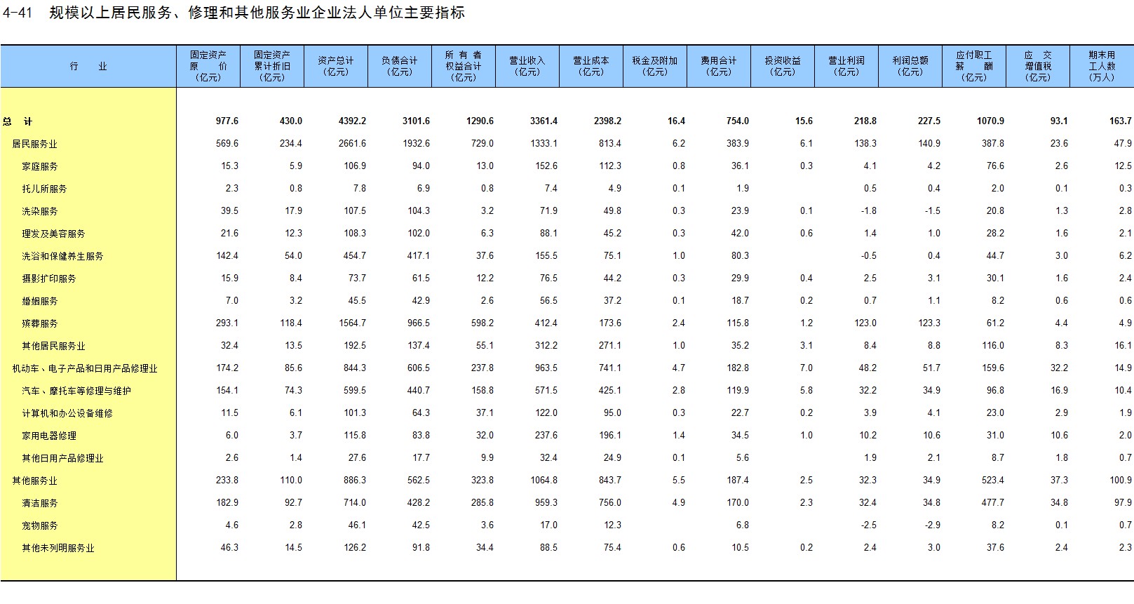 4-41 规模以上居民服务、修理和其他服务业企业法人单位主要指标
