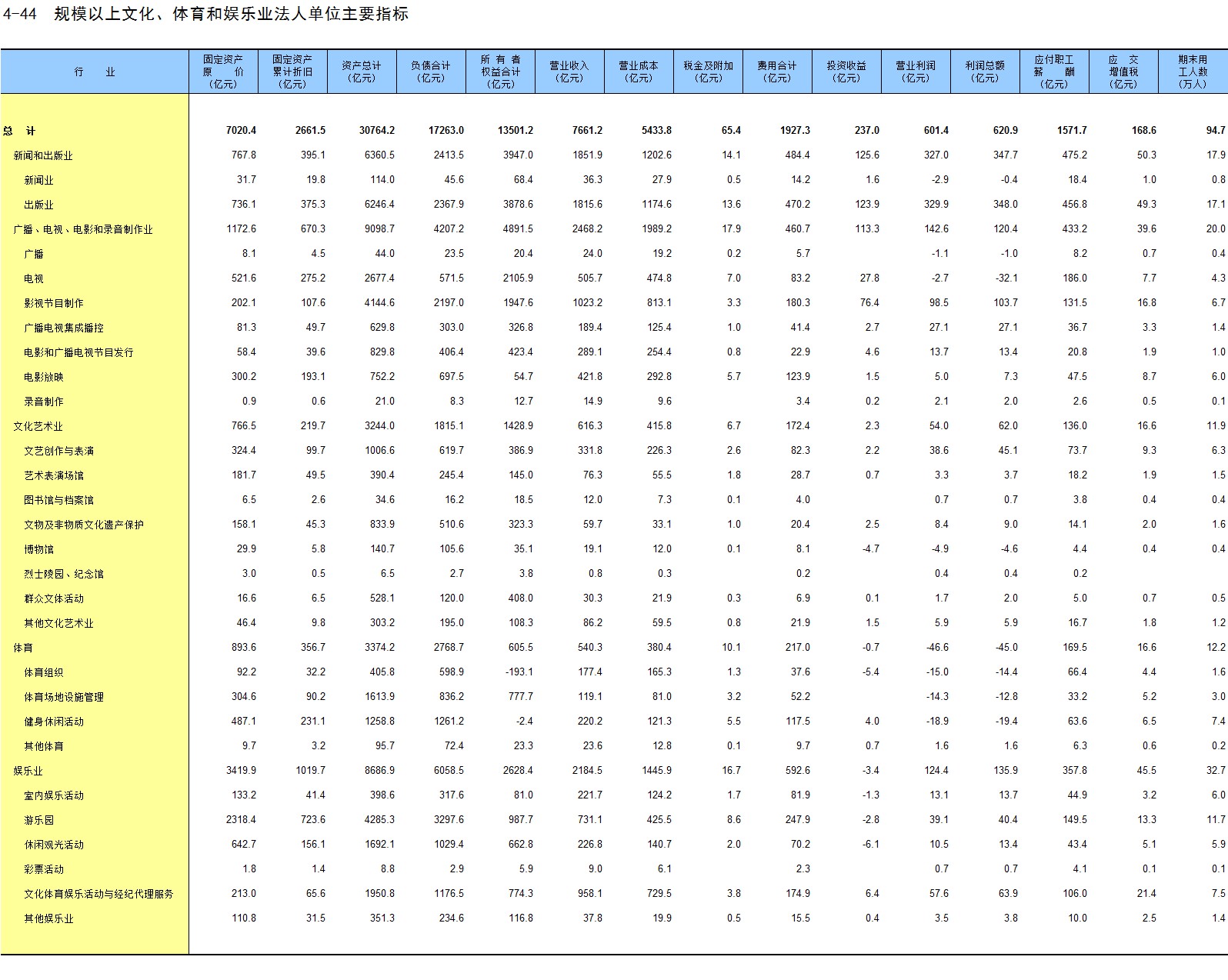 4-44 规模以上文化、体育和娱乐业法人单位主要指标