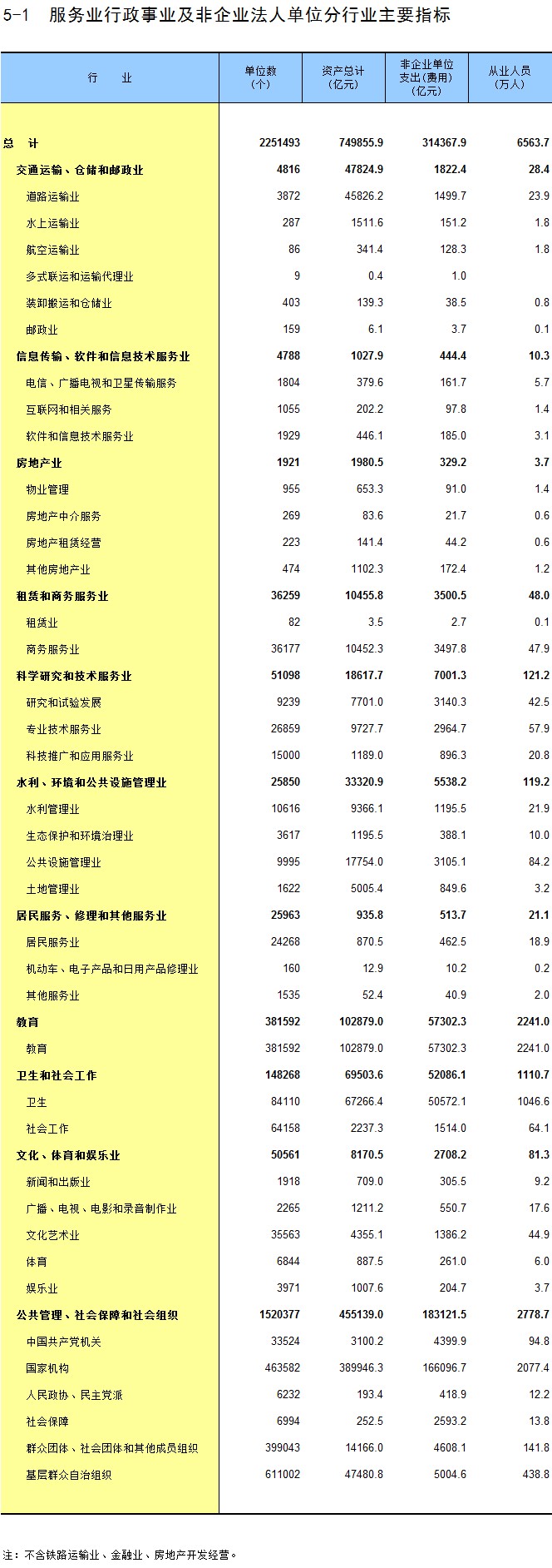 5-1 服务业行政事业及非企业法人单位分行业主要指标