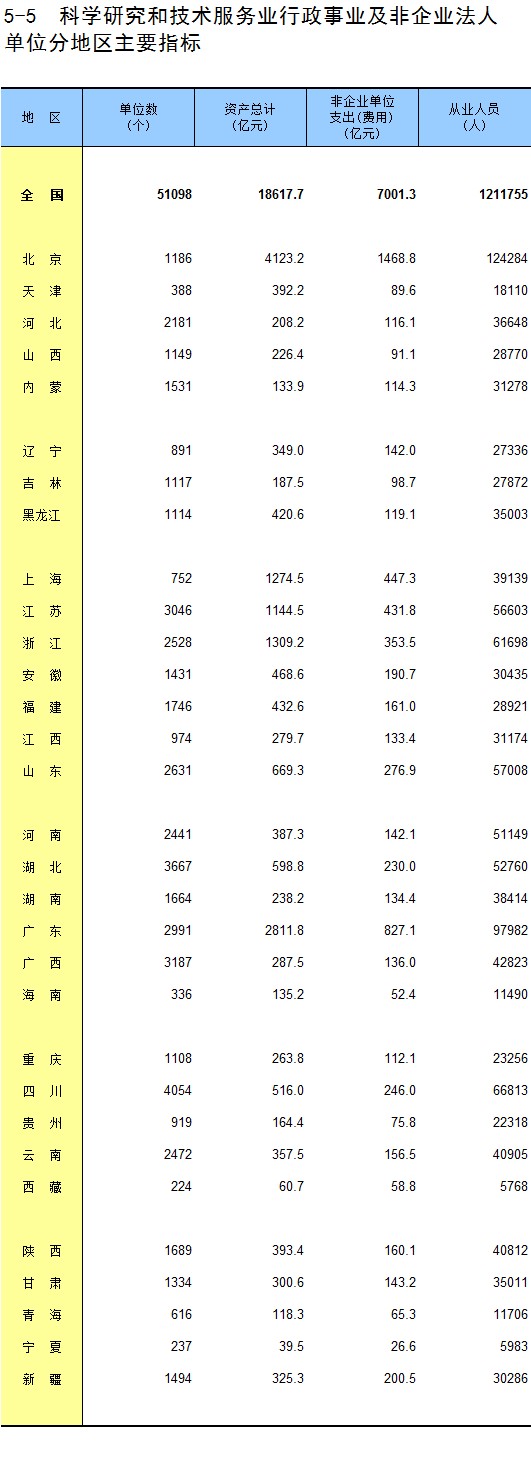 5-5 科学研究和技术服务业行政事业及非企业法人单位分地区主要指标